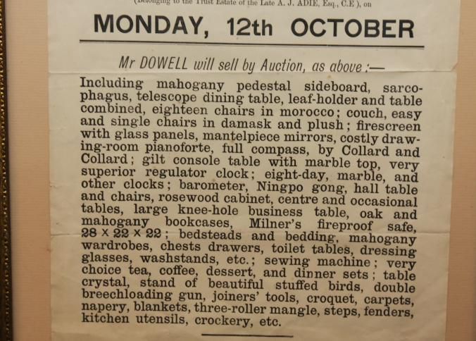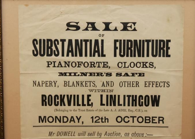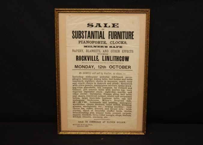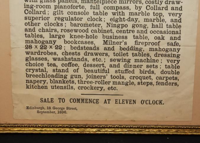 FR. 1896 ESTATE AUCTION BROADSIDE. 10X15". SUBSTATIAL FURNITURE, PIANOFORTE, CLOCKS, DRAPERY, BLANKETS,Created By
