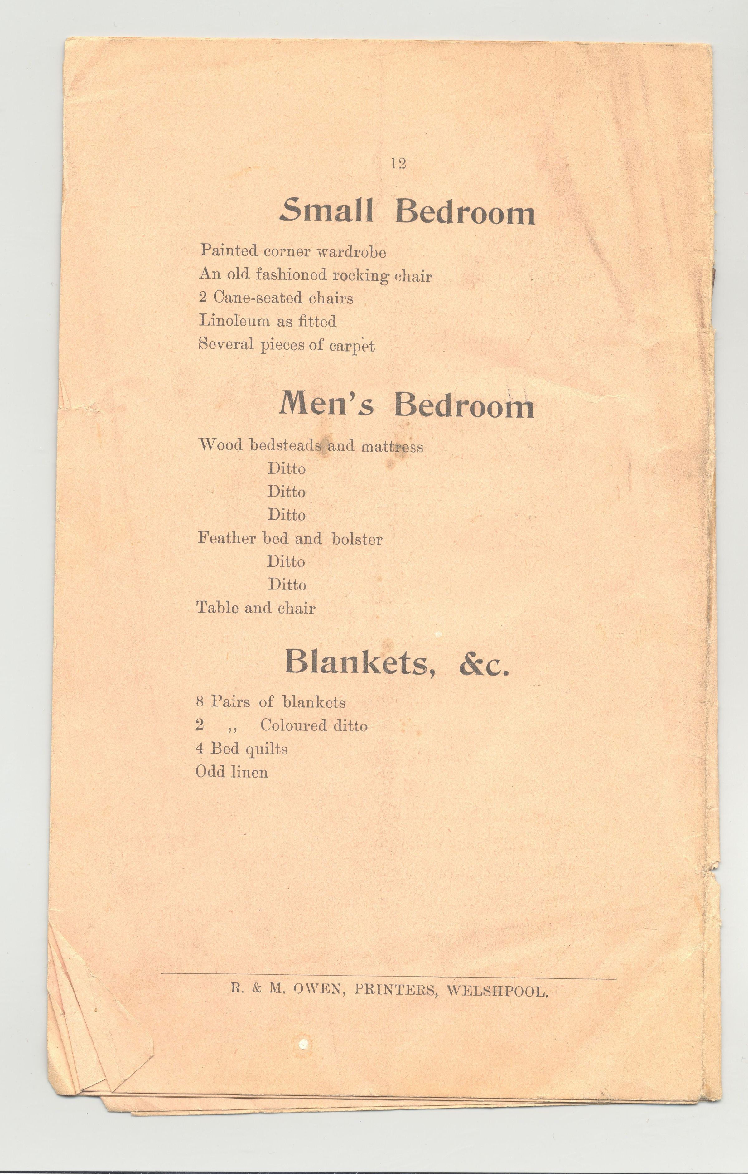 CAT, 1898, ESTATE, ENGLAND? POULTRY, FURNITURE, HOUSEHOLD, FARM. 12PP. 5" X 8"