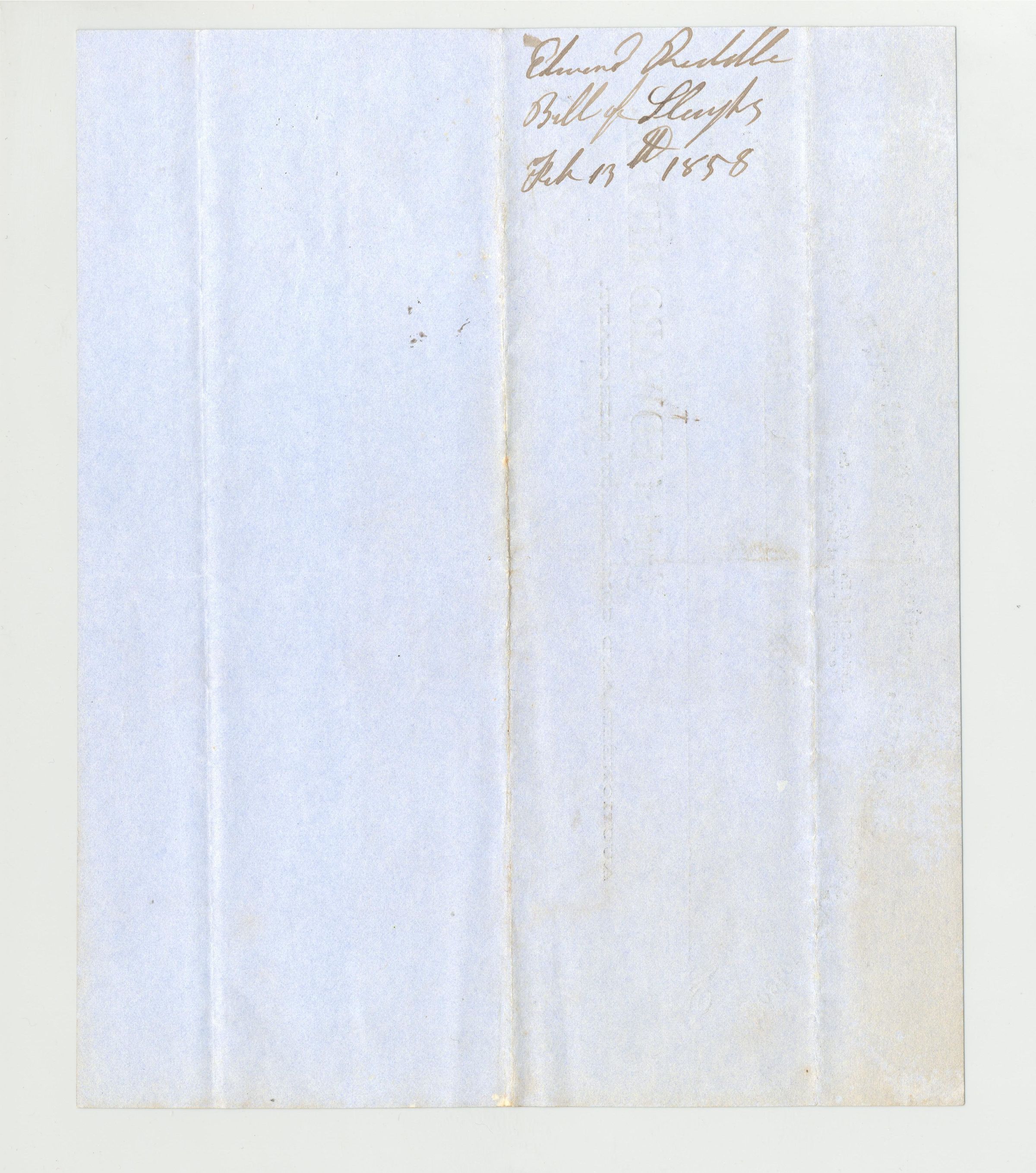 DOC, RECEIPT, 1858, MA. BOSTON CARRIAGE WAREHOUSE, FRONTING UNION ST AND HAYMARKET SQUARE. AUCTION SALE OF HORSES, CARRIAGES, ETC. EVERY SAT. EDWARD RIDDLE, AUCT.Created By