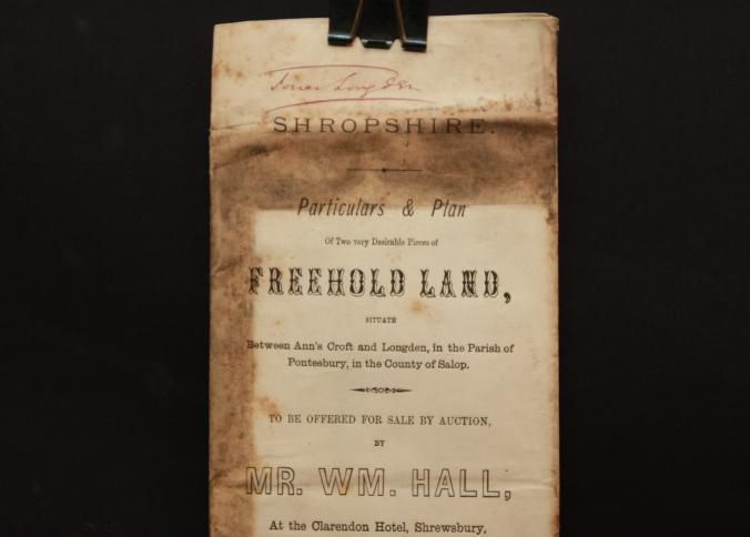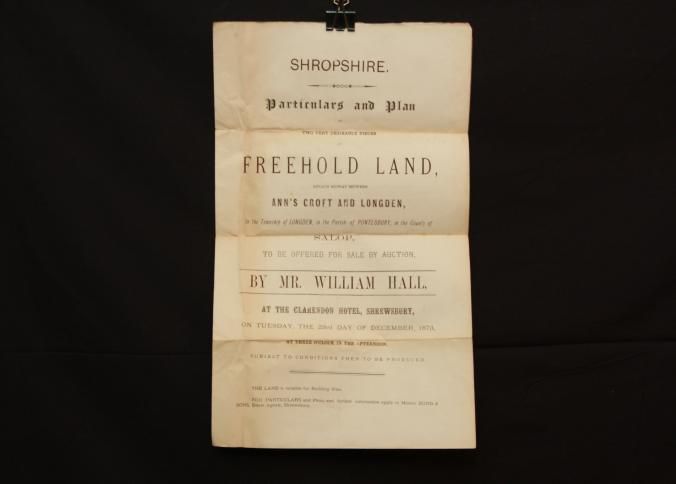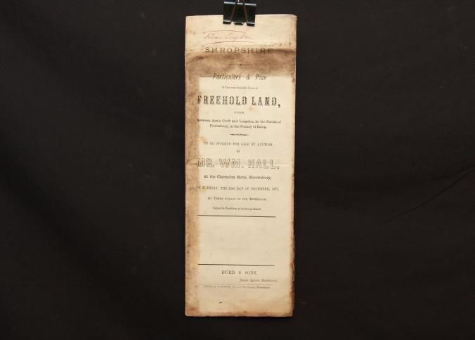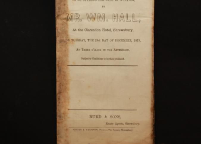 PARTICULARS, LAND, ENGLAND, 1873. SHROPSHIRE. MR WILLIAM HALL, AUCT. 11" X 17"