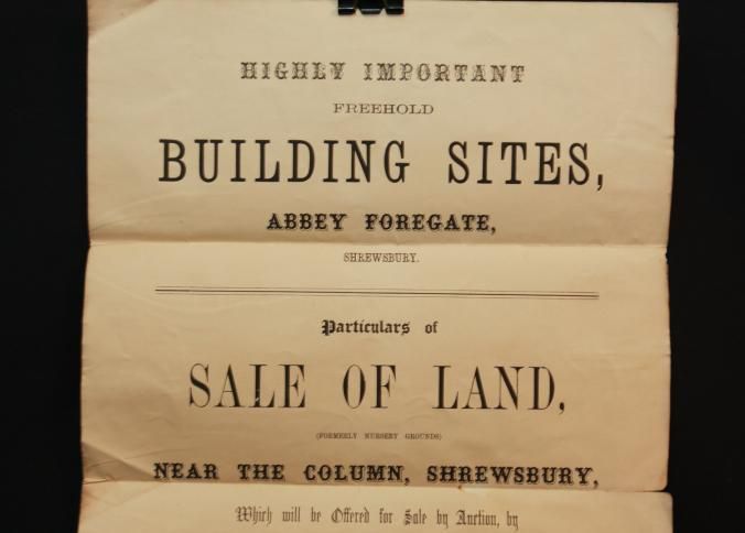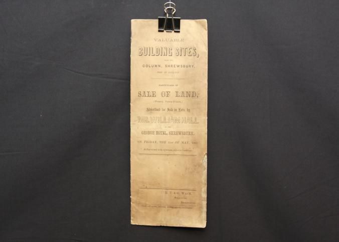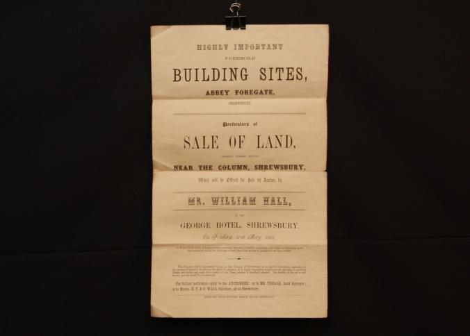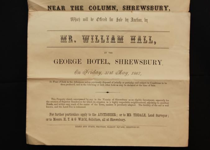 PARTICULARS, BLDG SITES, 1867, SHREWSBURY. MR. WILLIAM HALL, AUCT. 11" X 17"