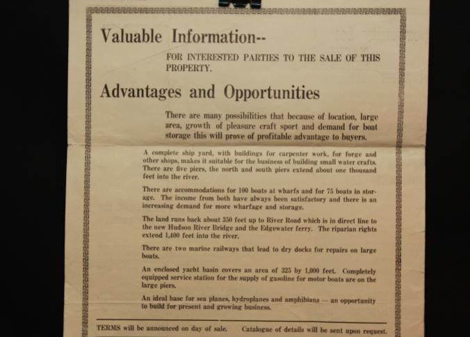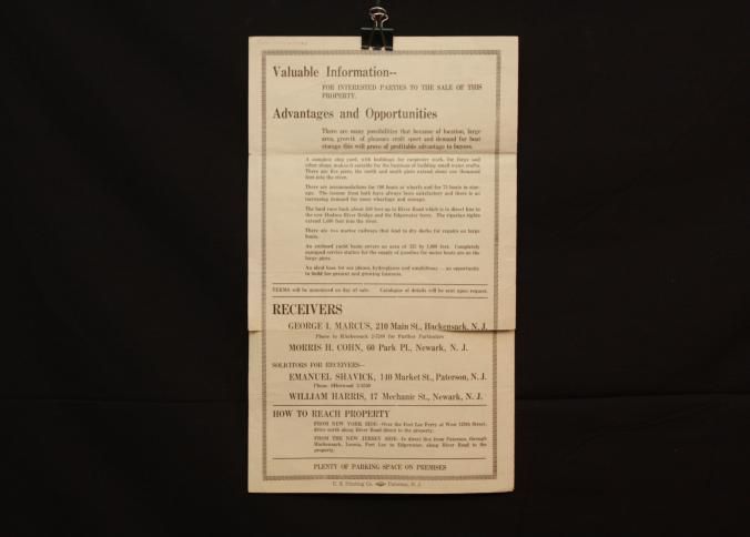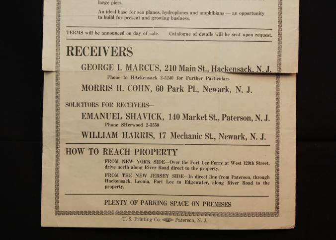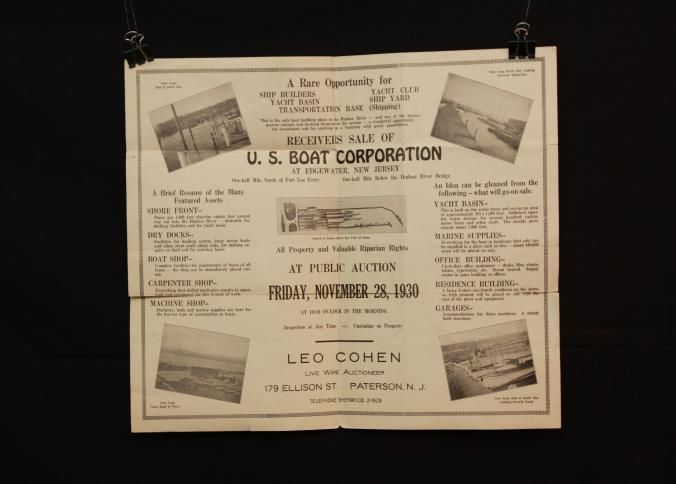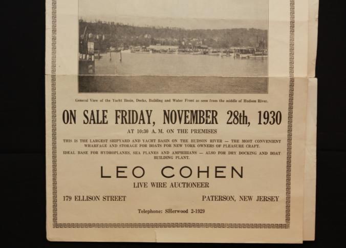 FLYER, 1930, LAND, NJ. WATERFRONT AND SHIPYARD. LEO COHEN, LIVE WIRE AUCTIONEER. 10 3/4" X 17"