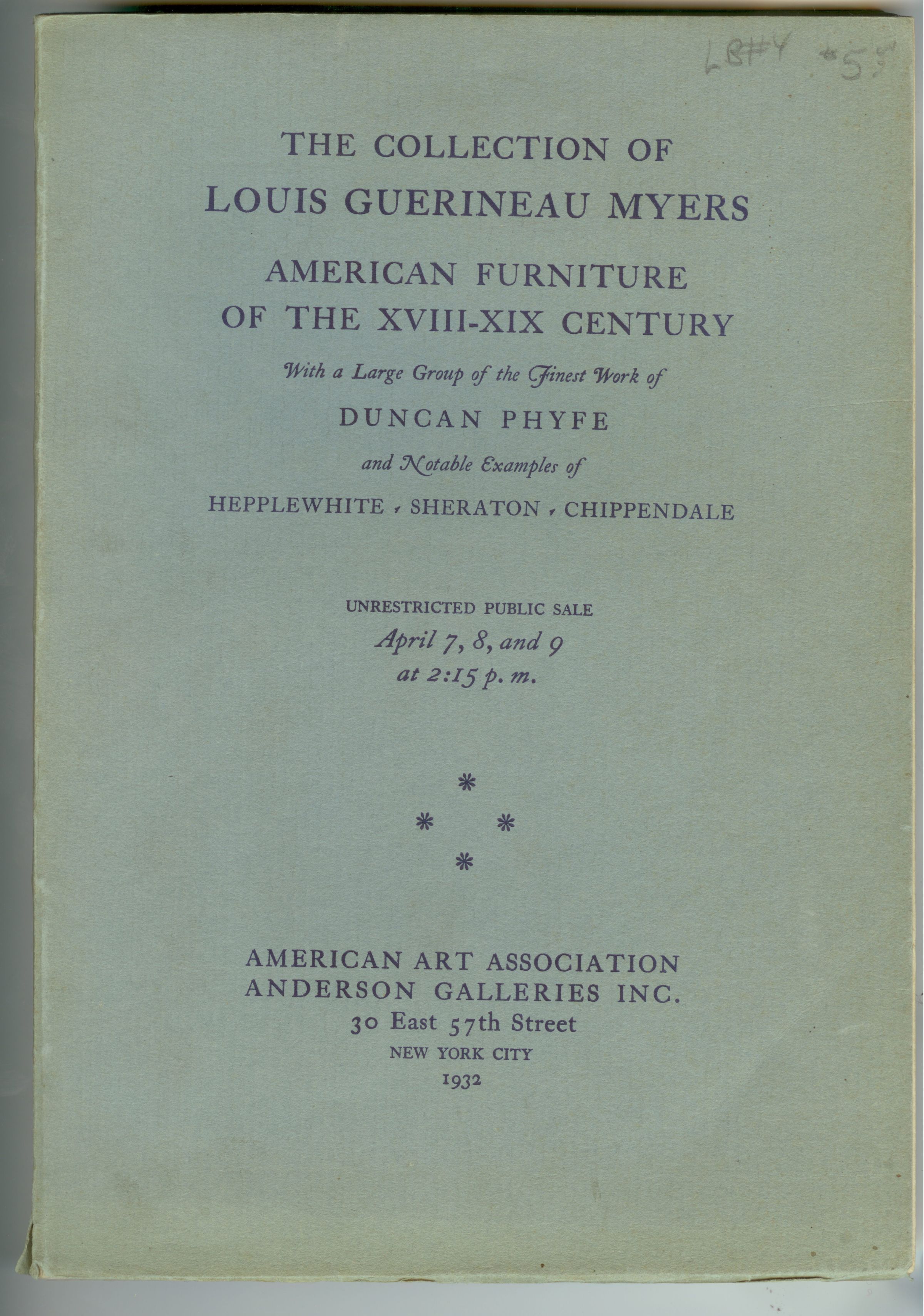 CAT, AMERICAN FURNITURE, 1932, NY. 18TH & 19TH CENTURY, AUCTION HELD AT AMERICAN ART ASSOC. ANDERSON GALLERIES, INC. 170 PP. 7 1/4" X 10 1/2"Created By