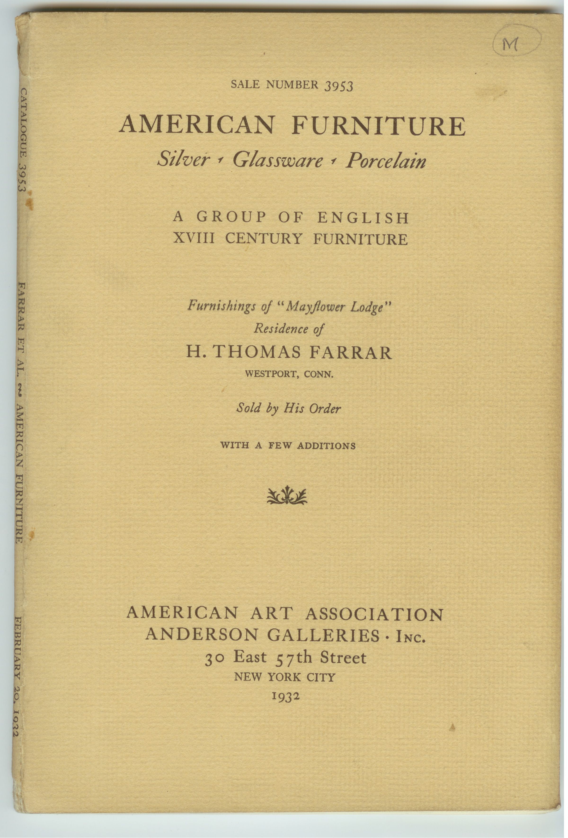 CAT, AMERICAN FURNITURE, 1932, NY. ENGLISH 18TH C. AMERICAN ART ASSOC, ANDERSON GALLERIES. 65 PP, 6 1/4" X 9 1/4"Created By