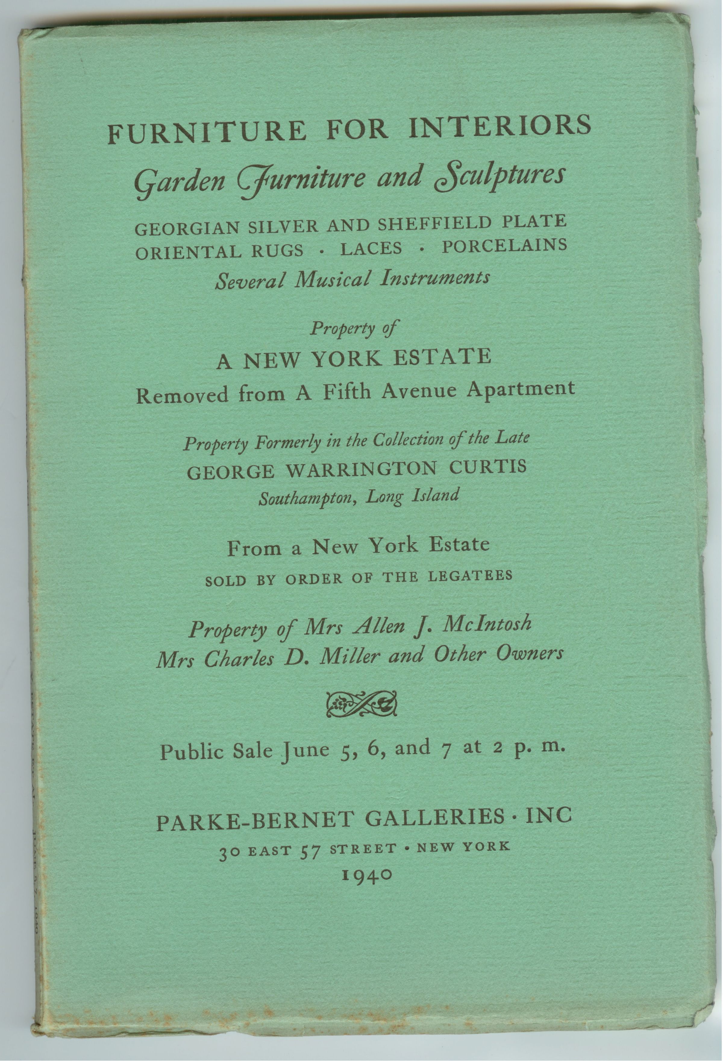 CAT, FURNITURE, 1940, NY. PARKE-BERNET GALLERIES, 122 PP, 6 1/2" X 9 1/2"