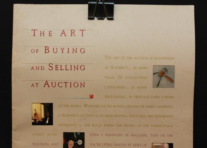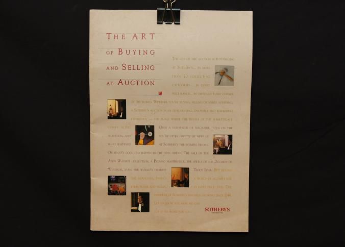 ADV CAT, AUCTION HALL, MODERN, NY. SOTHEBY'S, FOUNDED 1744. "THE ART OF BUYING AND SELLING AT AUCTION" 20 PP, 9" X 11 1/2"Created By