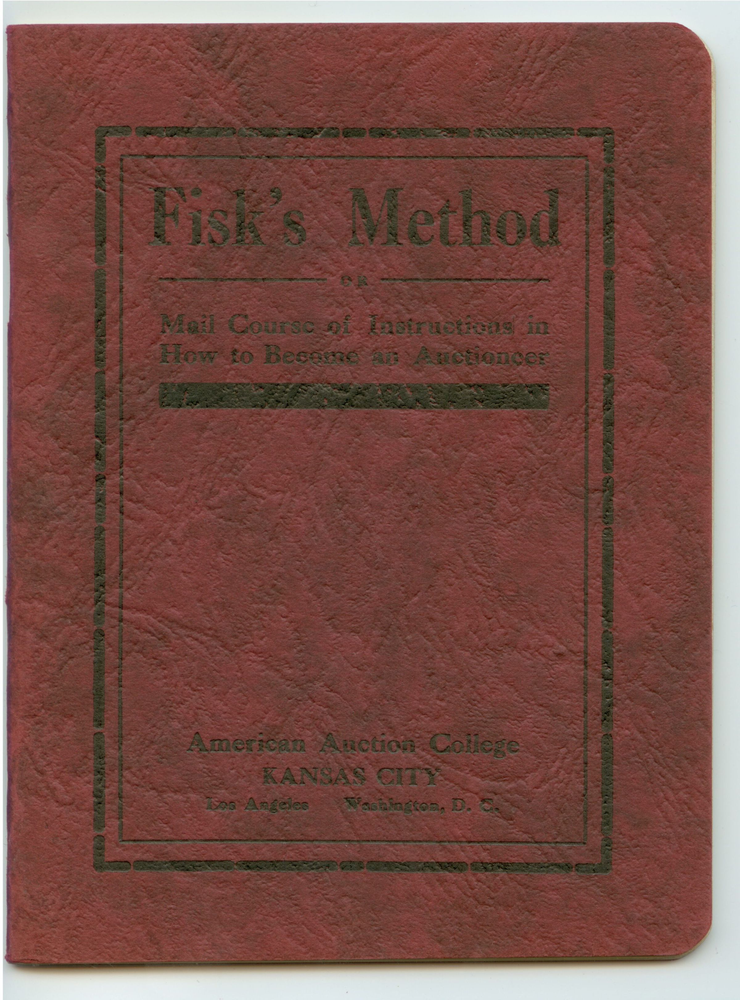 BKLT, AUCTION SCHOOL, MO. AMERICAN AUCTION COLLEGE. "FISK'S METHOD" OR HOW TO BECOME AN AUCTIONEER MAIL COURSE. BREEDERS PRINTING COL, KANSAS CITY, MO. 45 PP. 4 1/2" X 6"Created By