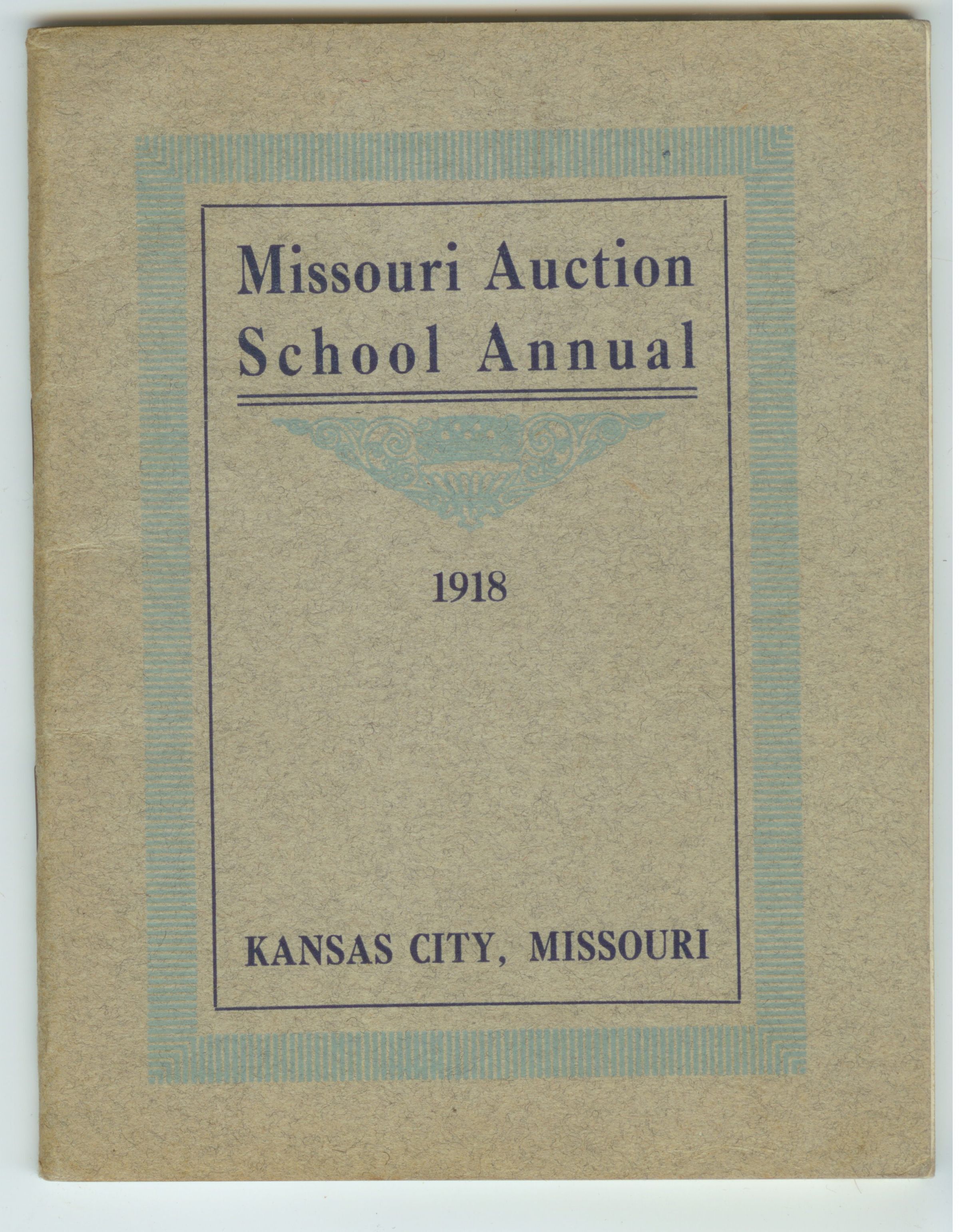 BKLT, AUCTION SCHOOL, 1918, MO. MISSOURI AUCTION SCHOOL ANNUAL. PORTRAITS OF GRADS, STORIES, QUOTES, ETC. 63 PP. 4 1/2" X 6"Created By