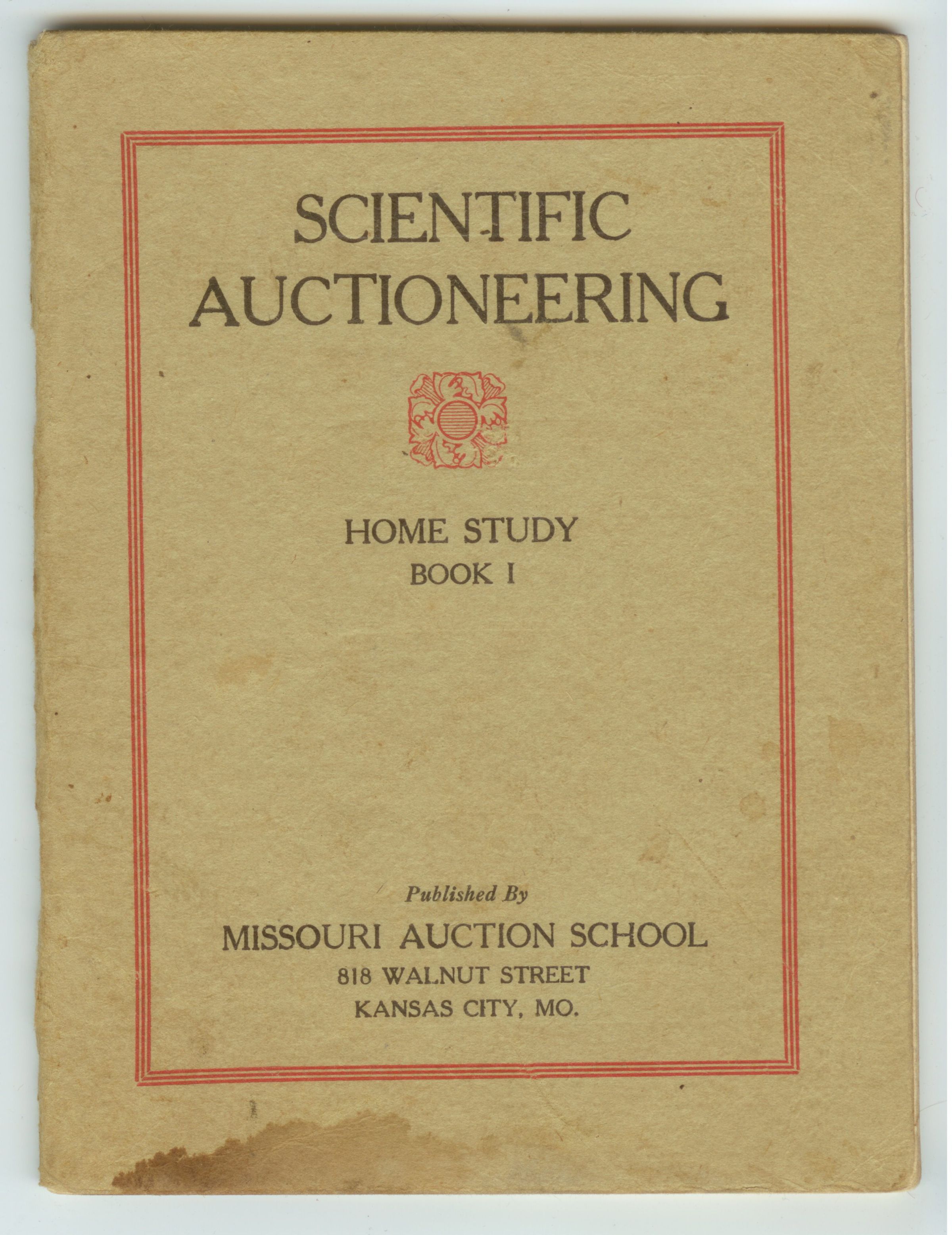 BKLT, 1910, MO. "SCIENTIFIC AUCTIONEERING" HOME STUDY BK 1. PUBL BY MISSOURI AUCTION SCHOOL. 57 PP. 4 1/2" X 6"Created By