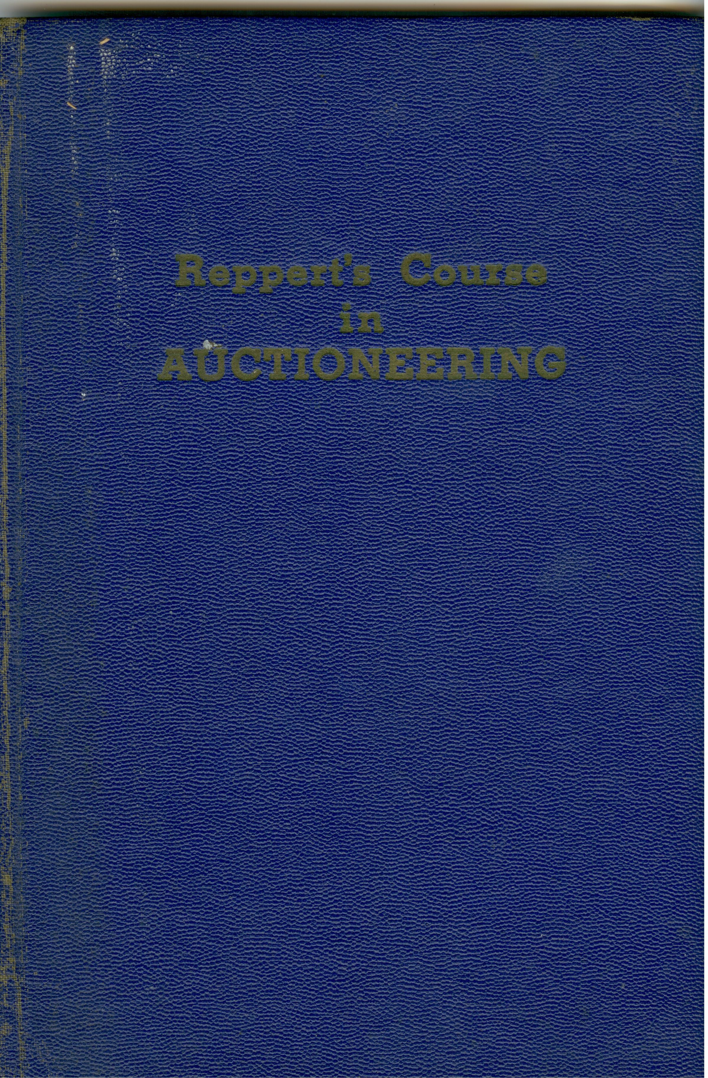 BOOK, "REPPERT'S CORRESPONDENCE COURSE OF AUCTIONEERING IN TEN LESSONS" BY COL. FRED REPPERT. WITH B/W PHOTOS. NO DATE, IN. 102 PP. 6" X 9"Created By