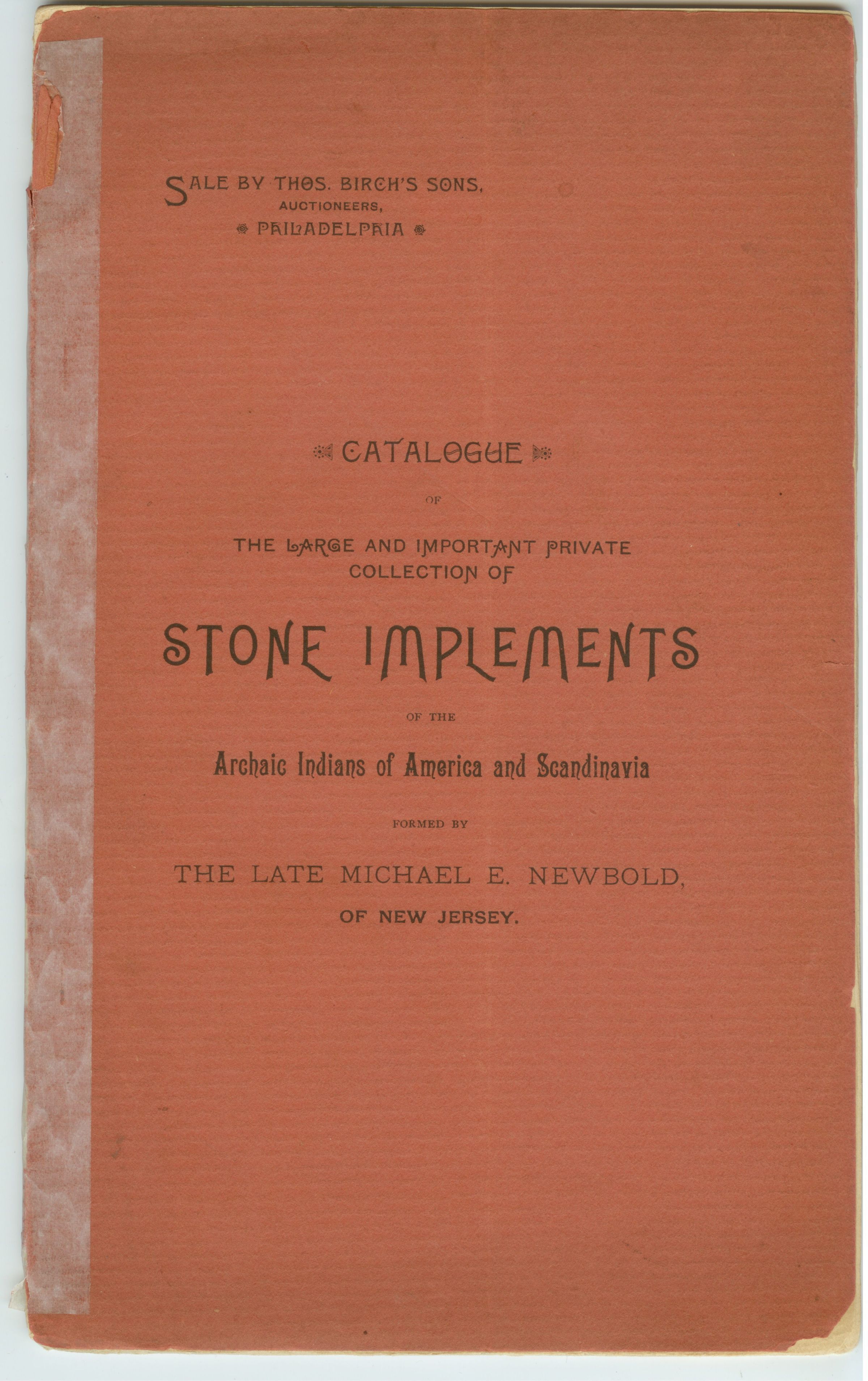 CAT, AMERICAN INDIAN TOOLS, 1889, PA. THOS. BIRCH'S SONS, AUCT'S. STONE IMPLEMENTS OF THE ARCHAIC INDIANS OF AMERICA AND SCANDINAVIA. 52 PP. 6" X 10"Created By