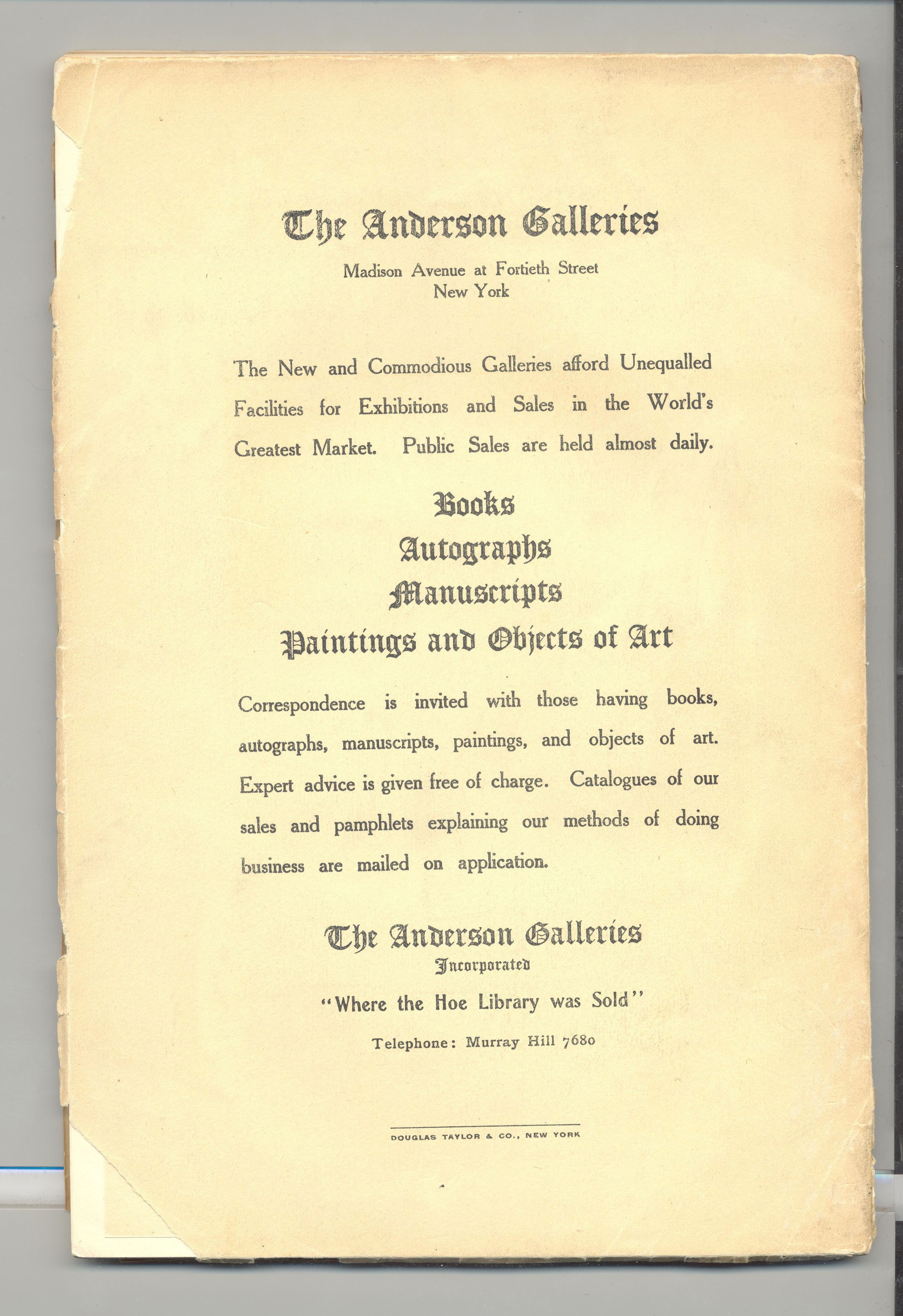 CAT, AMERICANA, 1917, NY. MANY ITEMS FROM 1600'S THE ANDERSON GALLERIES, 118 PP. 6" X 9"
