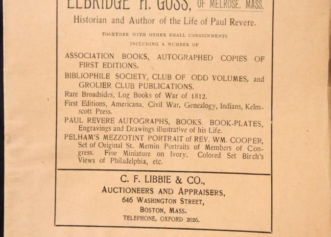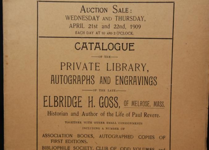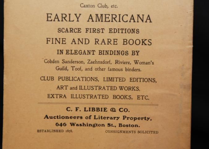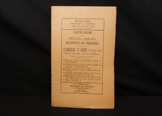 CAT, AUTOGRAPHS, 1909, MA. ENGRAVINGS, BOOKS. C.F. LIBBIE & CO, AUCTS. 141 PP. 6 1/2" X 9 1/2"