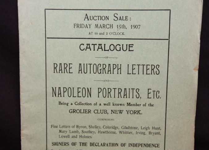 CAT, AUTOGRAPH LETTERS, 1907, MA. NAPOLEON COLLECTION PORTRAITS, LETTERS, ETC. C.F. LIBBIE & CO. 58 PP. 6" X 9 1/2"Created By