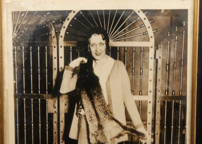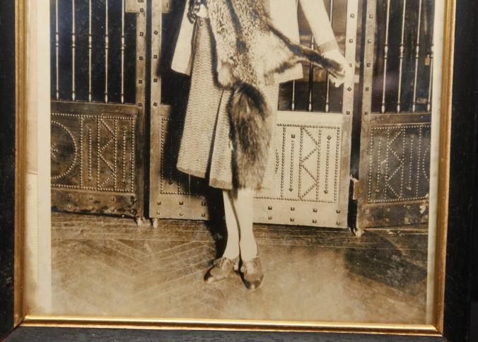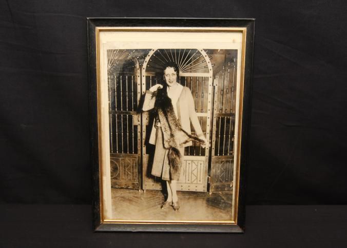 FR. EARLY 20THC PHOTO OF FUR AUCTION PREVIEW. 6X8". C-1920'S. A WELL DRESSED WOMAN SHOWING A FUR ON STAGE.Created By