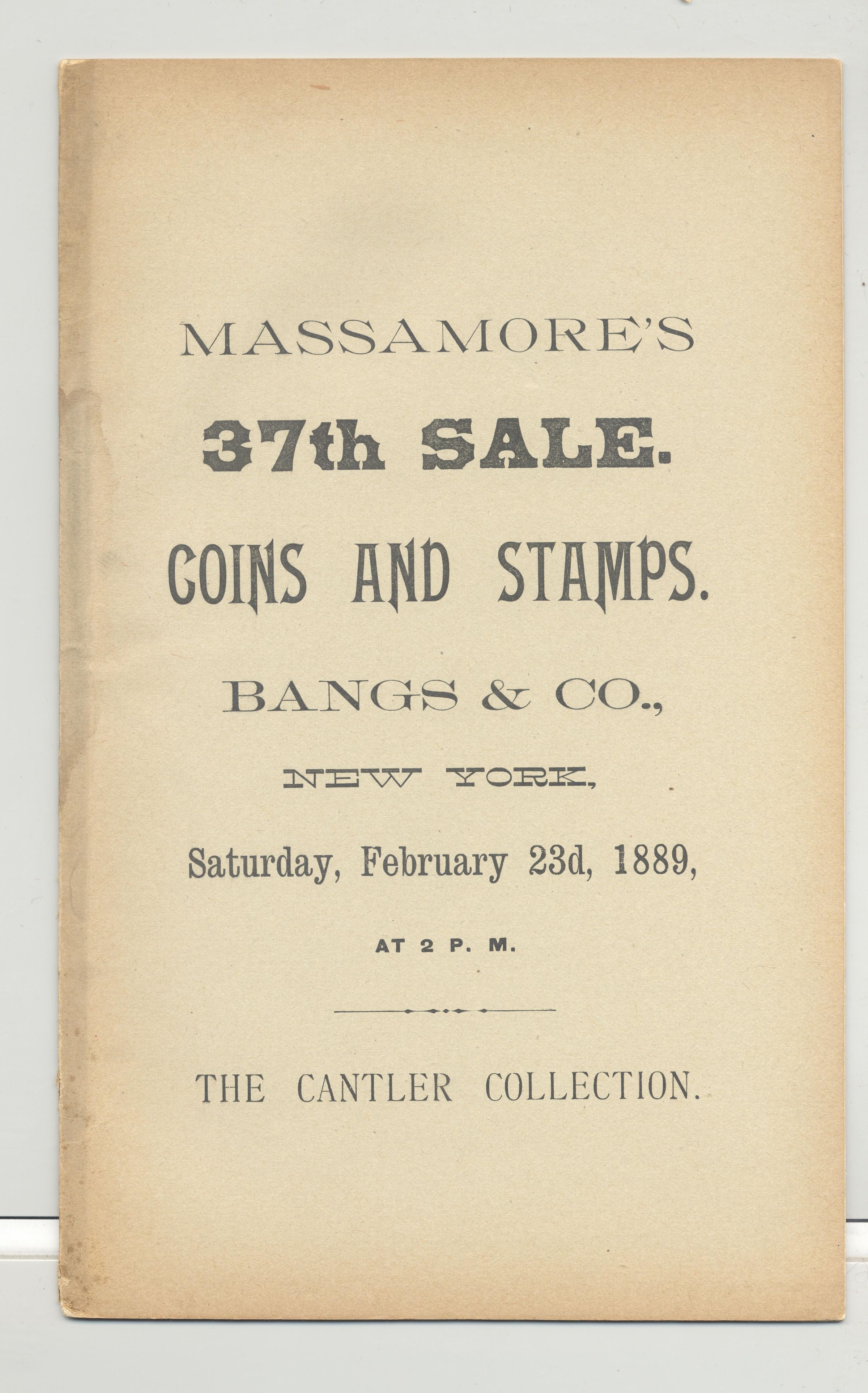 CAT, COINS, STAMPS, 1889, NY. MASSAMORE'S 37TH SALE, BANGS & CO, AUCTS. THE CANTLER COLLECTION. 17 PP. 5 3/4" X 9 1/4"Created By