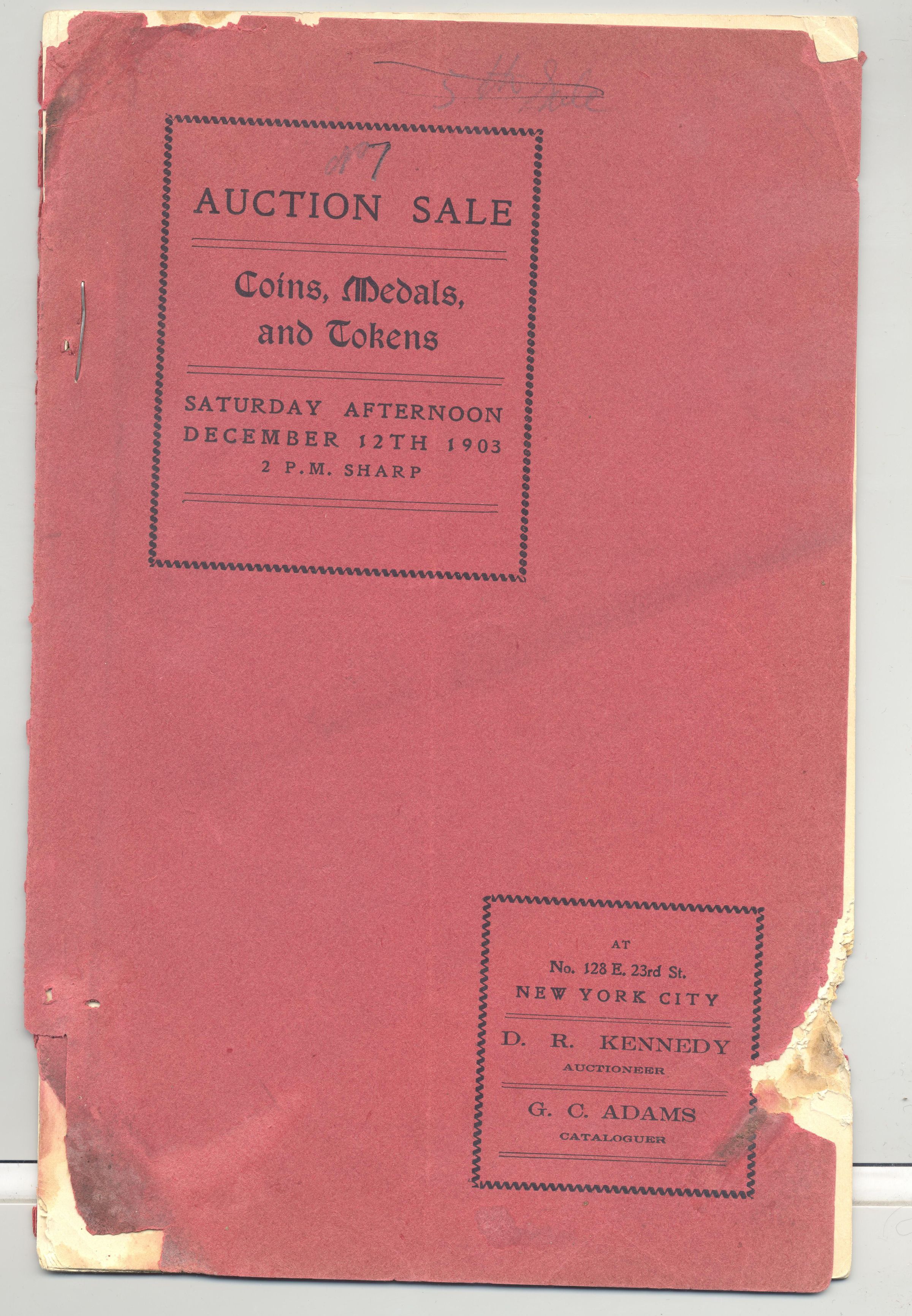 CAT, COINS, 1903, NY. NO. 7 AUCTION SALE, MEDALS, TOKENS. DANIEL KENNEDY, AUCT. 26 PP. 6" X 9 1/4"Created By