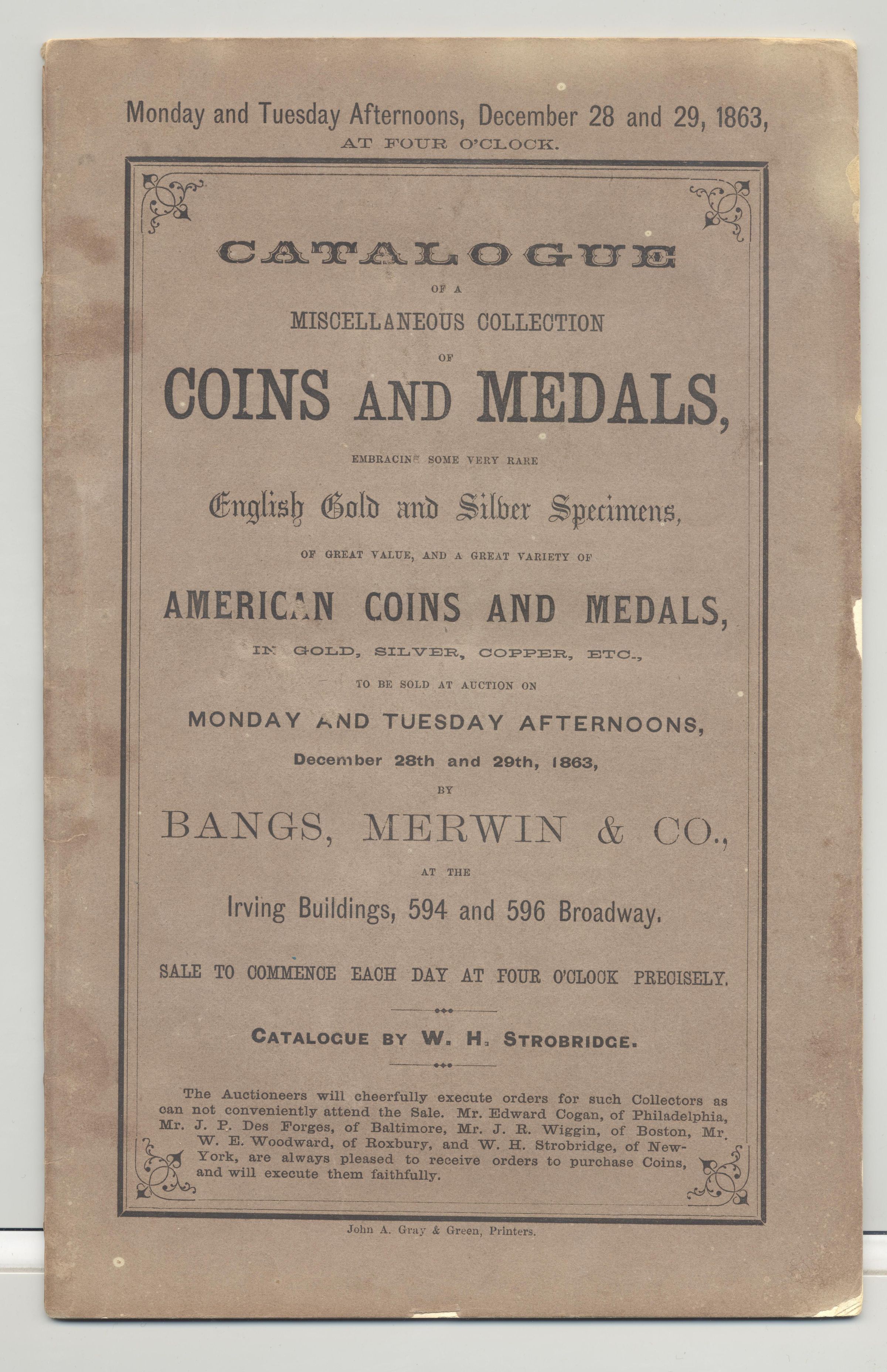 CAT, COINS, 1863, NY. BANGS, MERWIN & CO, AUCTS, 29 PP. 6" X 9"