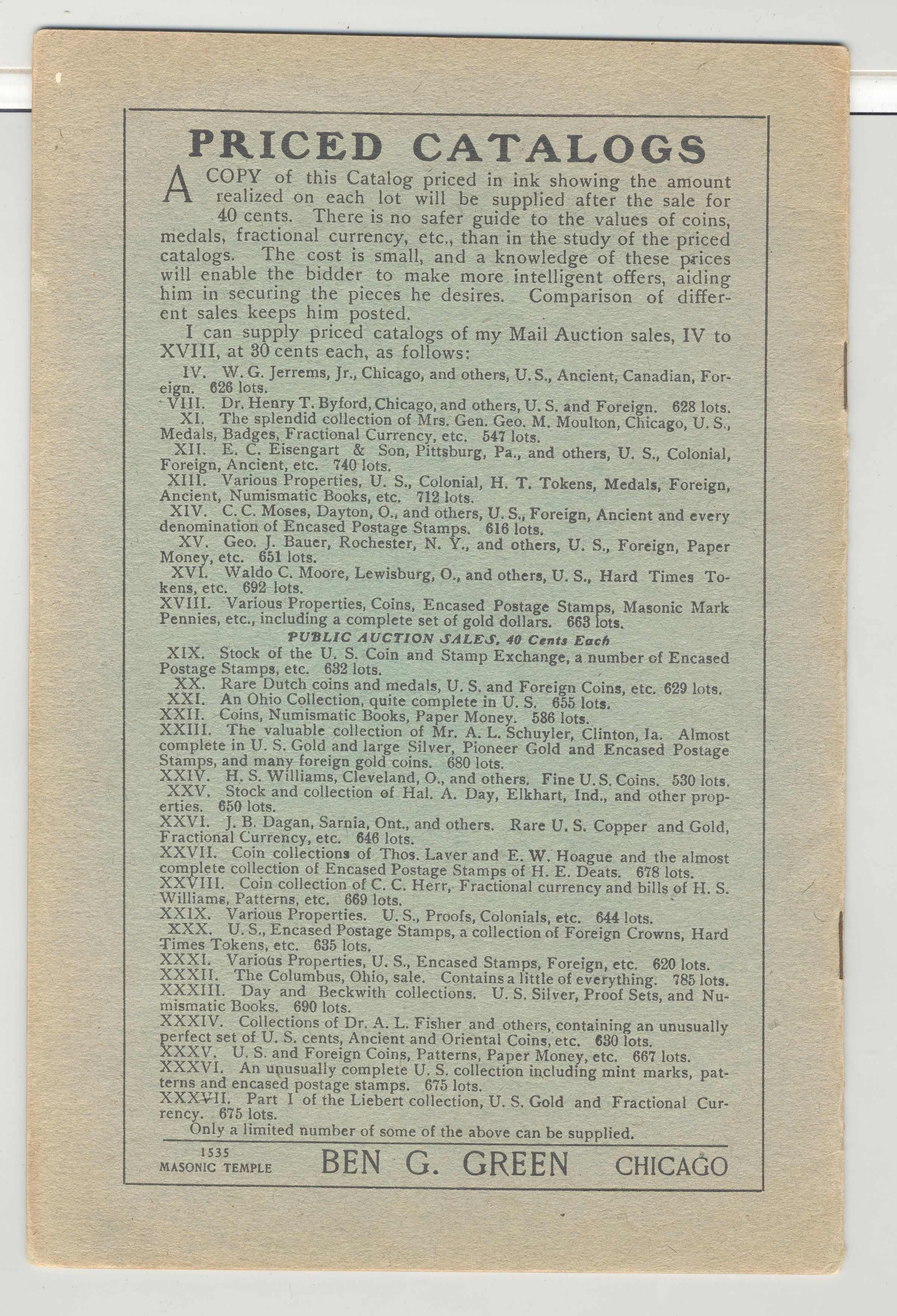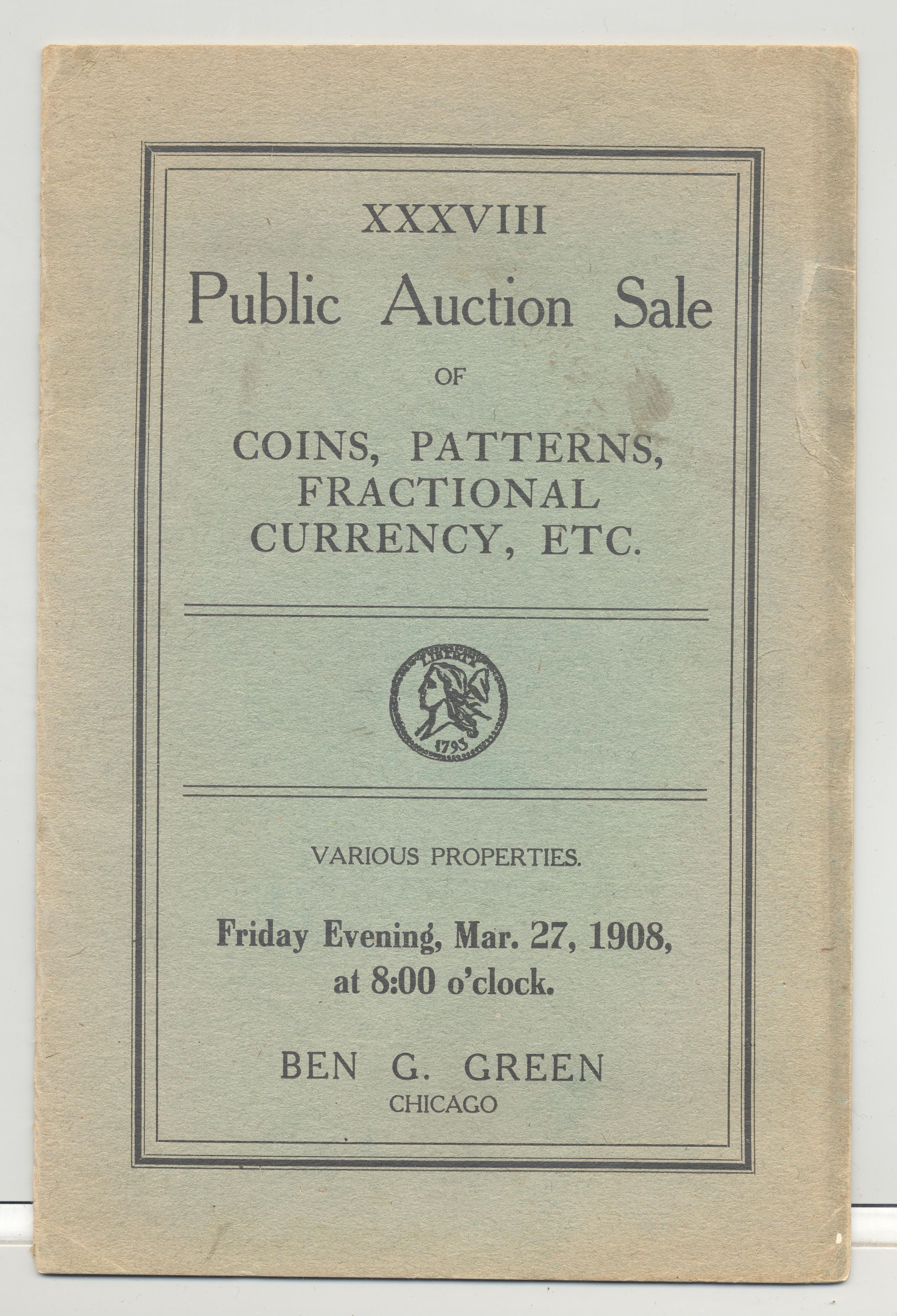 CAT, COINS, 1908, IL. PATTERNS, FRACTIONAL CURRENCY. 38TH AUCTION SALE. MARVIN BARLOW, AUCT. 16 PP. 6" X 9"Created By