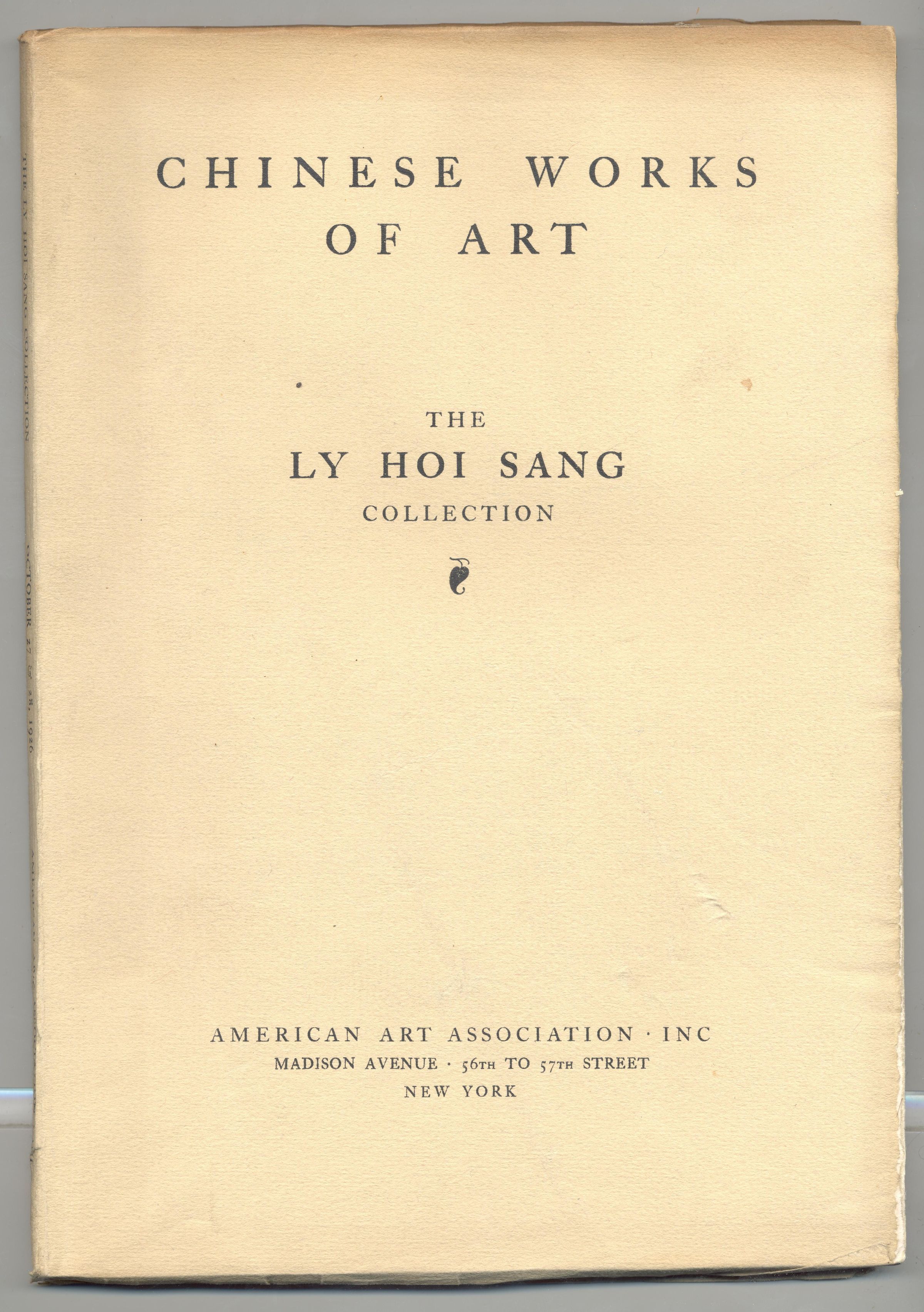 CAT, ART, 1926, NY. CHINESE WORKS OF ART, THE LY HOI SANG COLLECTION. AMERICAN ART ASSOC, INC. SOME PRICES WRITTEN, 122 PP, 7" X 9"Created By