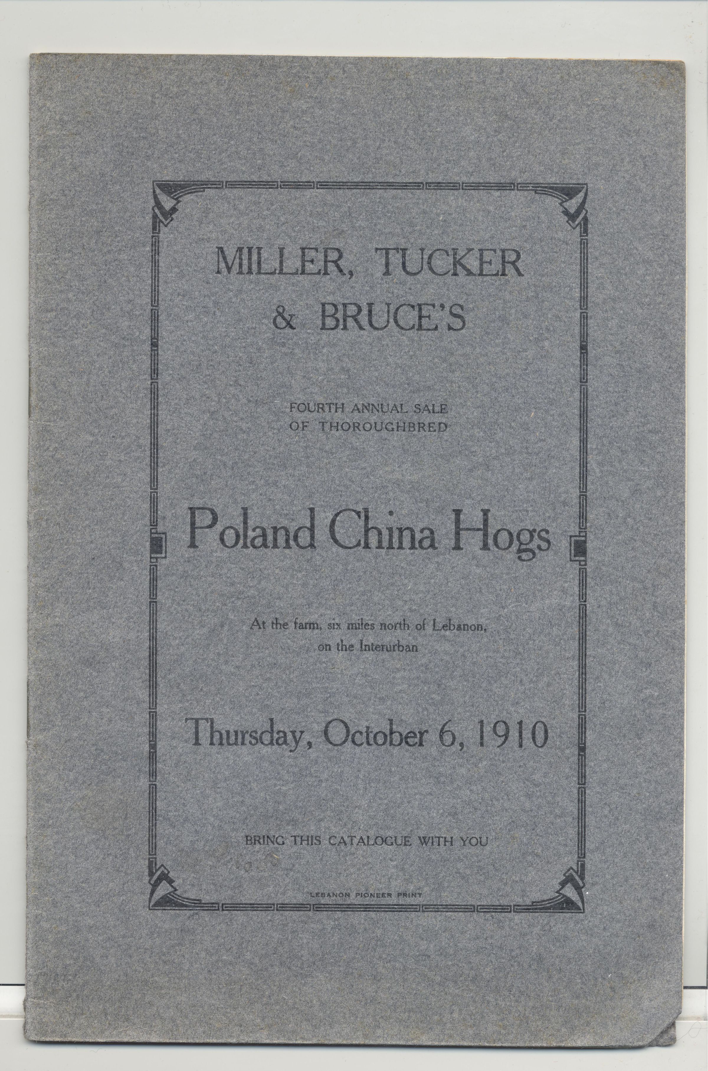 CAT, PIGS, 1910, IN. MILLER, TUCKER & BRUCE'S 4TH ANNUAL SALE OF THOROUGHBRED POLAND CHINA HOGS. NORTH OF LEBANON. PRICES WRITTEN, 18 PP. 6" X 9"Created By