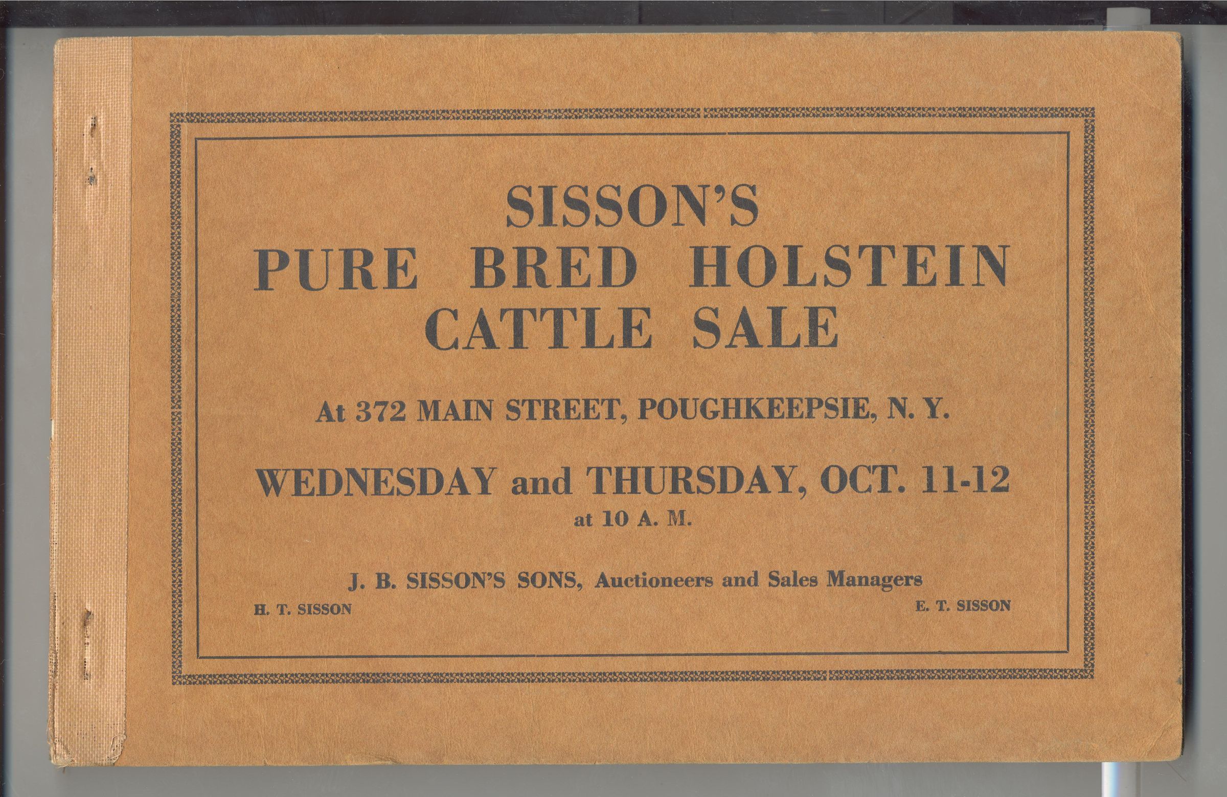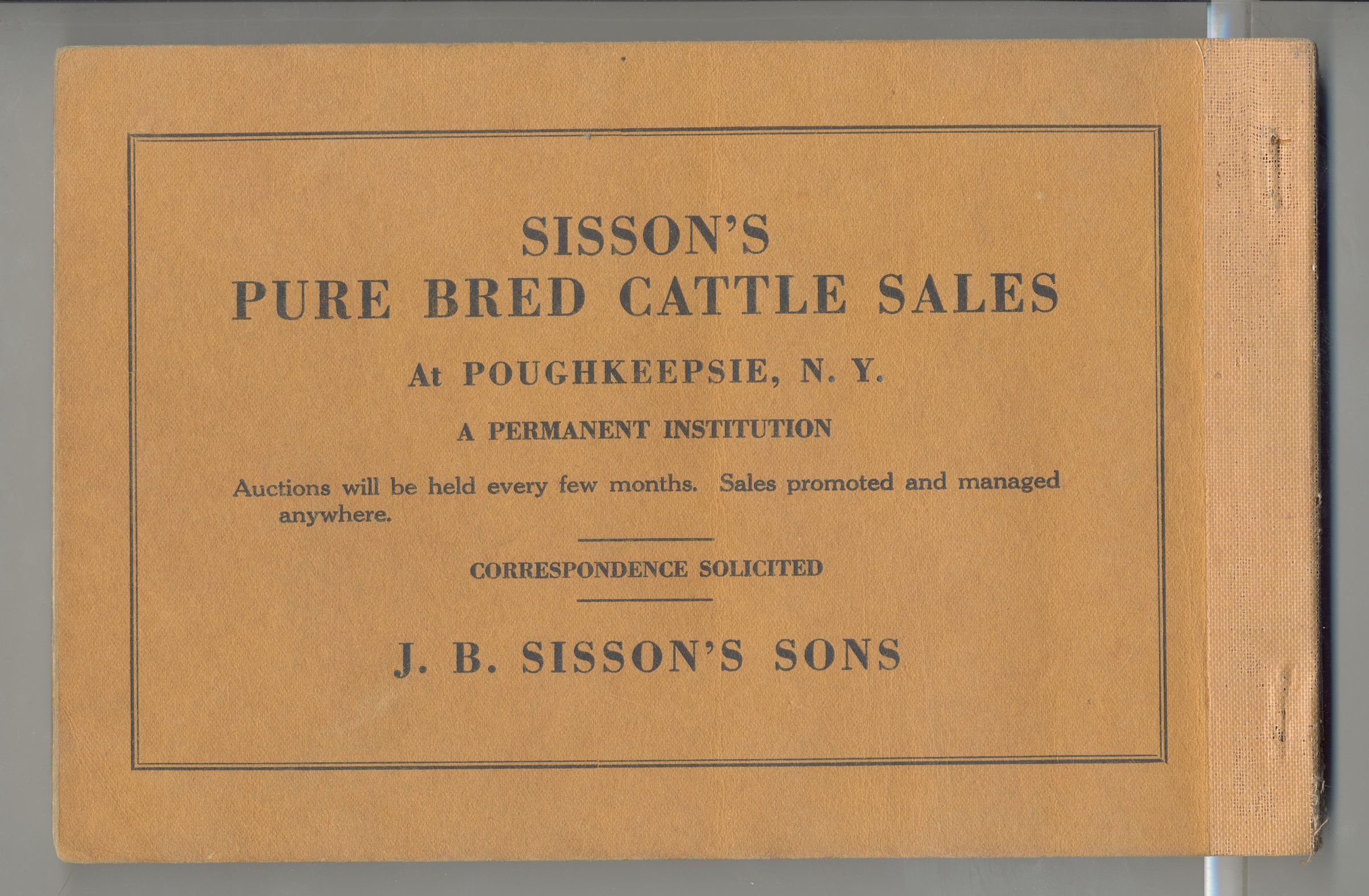 CAT, CATTLE, 1916, POUGHKEEPSIE, NY. SISSON'S PURE BRED HOLSTEIN'S SALE. J.B. SISSON'S SONS, AUCTS. SOME PRICES, B/W PHOTOS. 147 PP. 9" X 6"Created By