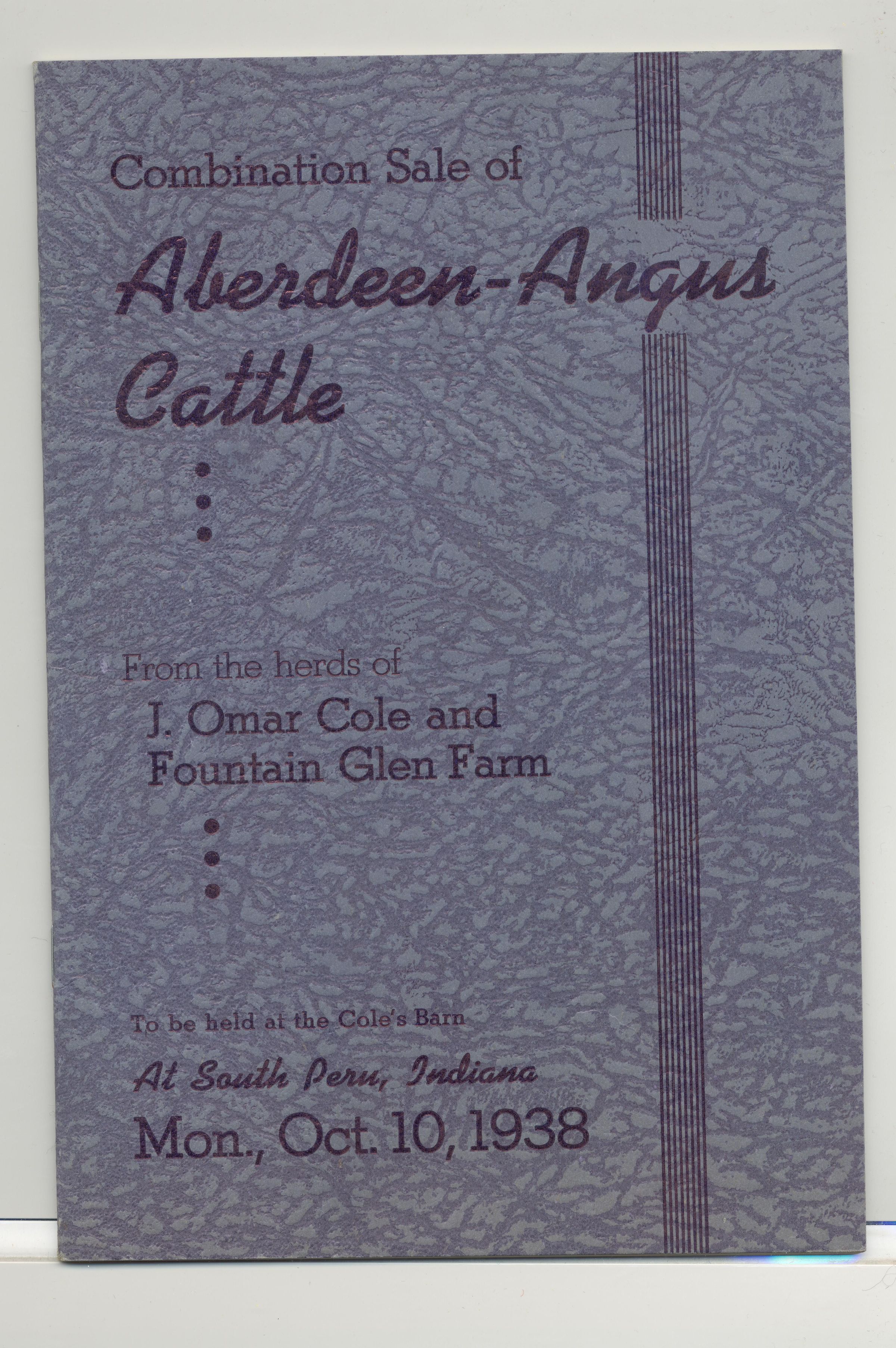 CAT, CATTLE, 1938, IN. ABERDEEN-ANGUS, FOUNTAIN GLEN FARM. COL. WM COOPER, L.A. SHIVLEY, WILBUR L. CLAIR, AUCTS. 32 PP. 6" X 8 3/4"Created By