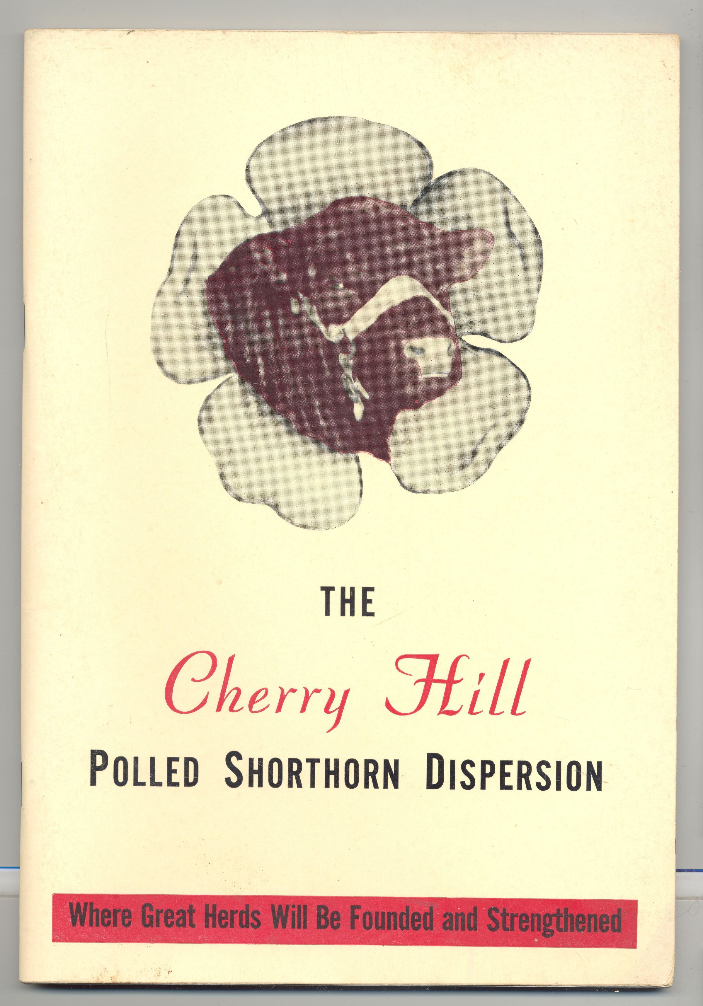 CAT, CATTLE, 1950, MD. THE CHERRY HILL POLLED SHORTHORN DISPERSION. "WHERE GREAT HERDS WILL BE FOUNDED AND STRENGTHENED" J.E. HALSEY, MILTON DANCE, AUCTS. B/W PHOTOS, 100 PP, 6 3/4" X 9 3/4"Created By