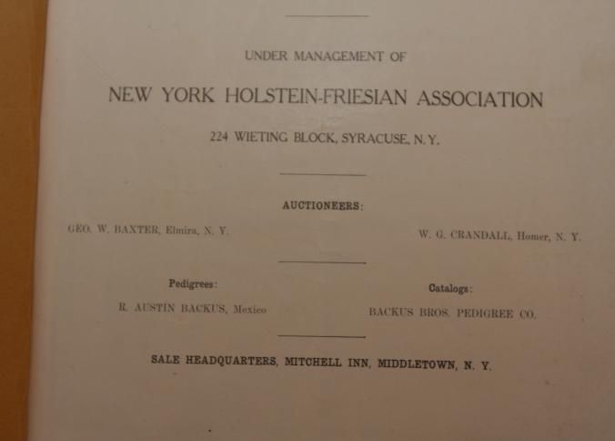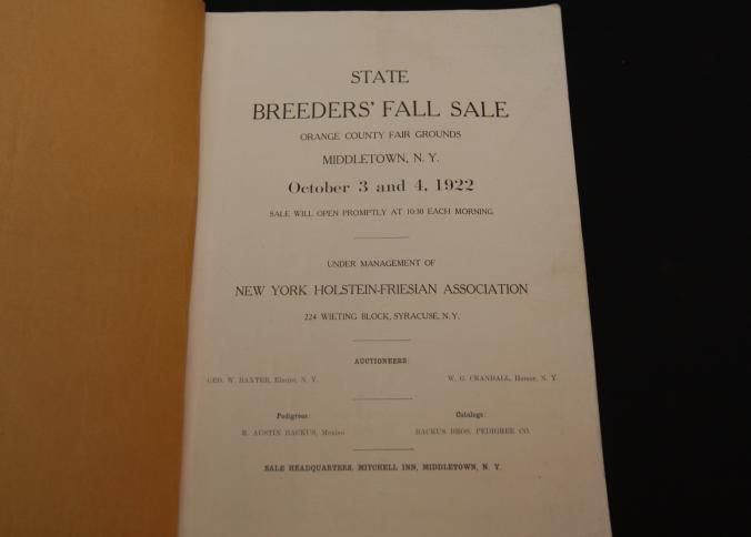 CAT, CATTLE, 1922, NY. STATE BREEDERS' FALL SALE, ORANGE CTY FAIR GROUNDS, MIDDLETOWN. GEO. BAXTER, W.G. CRANDALL, AUCTS. SOME PRICES, B/W PHOTOS. APPROX 100 PP. 8 3/4" X 11 3/4"Created By