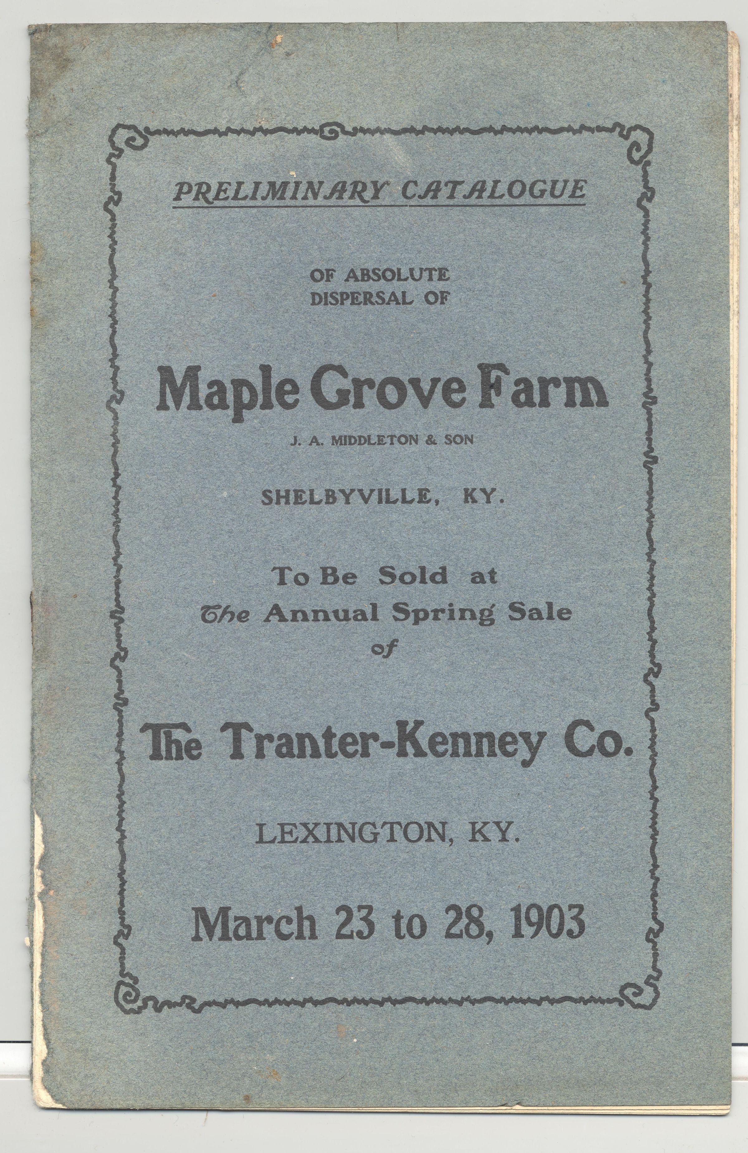 CAT, HORSE, 1903, KY. ABSOLUTE DISPERSAL OF MAPLE GROVE FARM, ANNUAL SPRING SALE OF TRANTER-KENNEY CO. 16 PP. 6" X 9"Created By