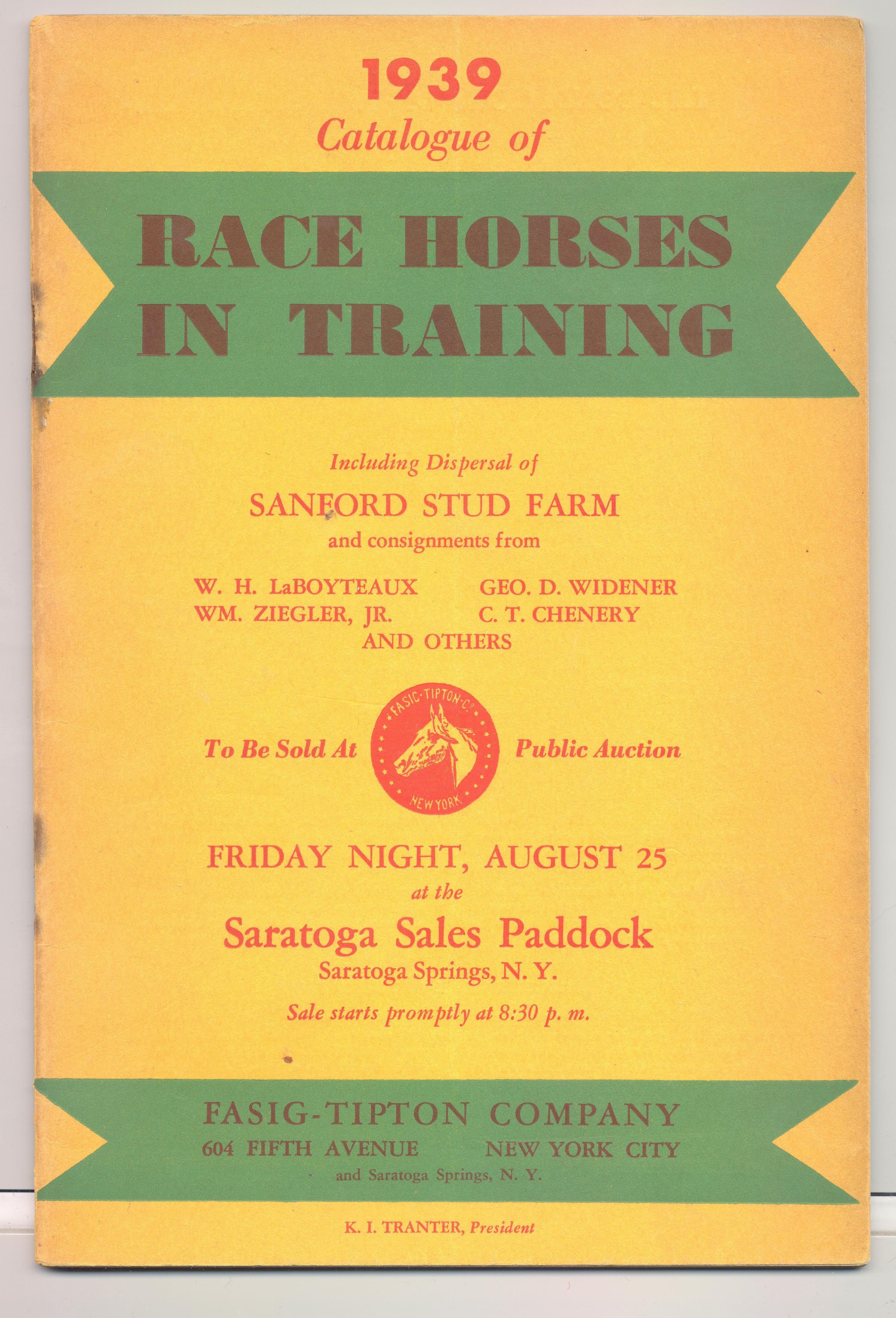 CAT, HORSE, 1939, NY. RACE HORSES IN TRAINING, FASIG-TIPTON CO, AUCTS. 37 PP. 6" X 9"