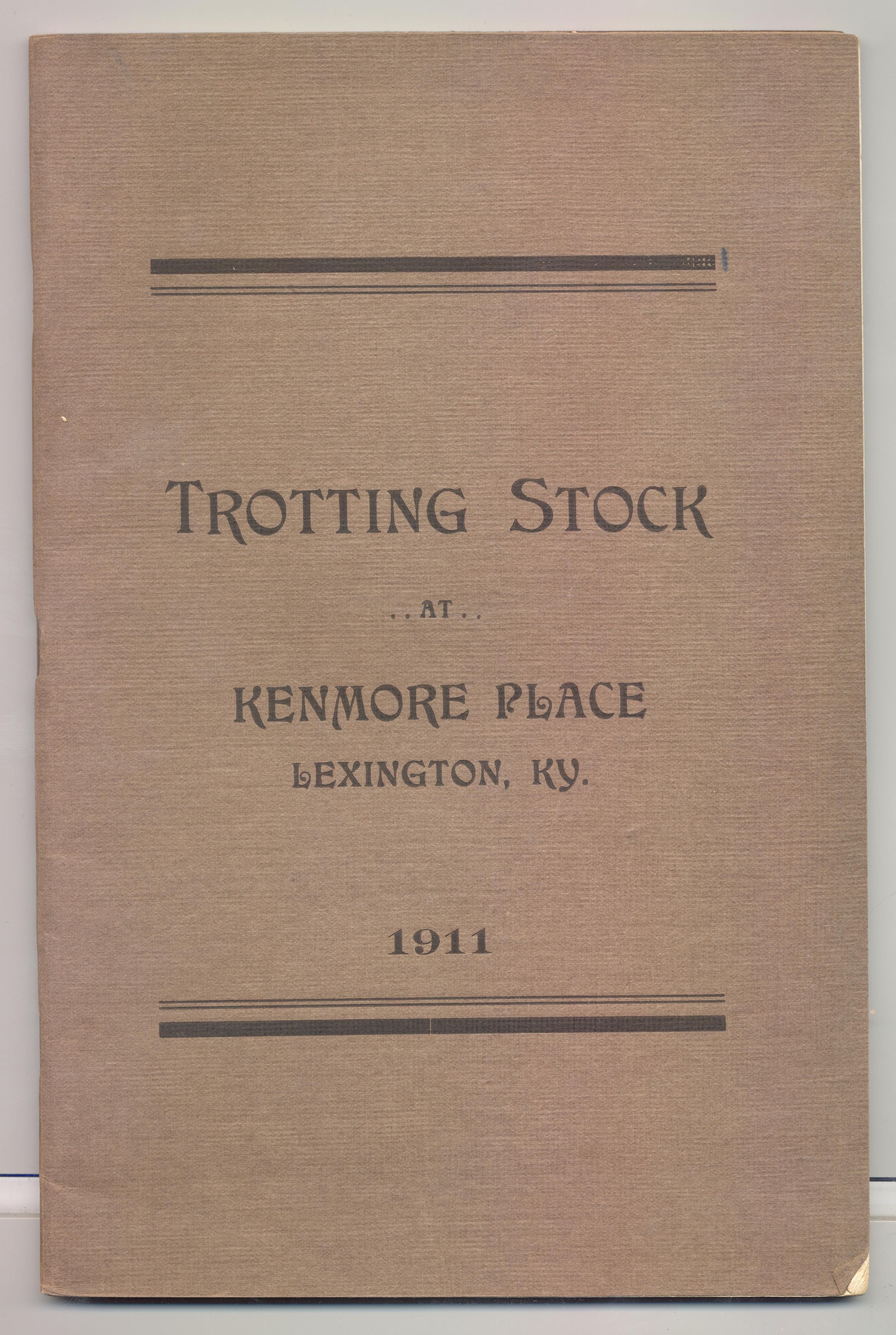 CAT, HORSE, 1911, KY. TROTTING STOCK AT KENMORE PLACE, LEXINGTON. 69 PP. 6" X 9"