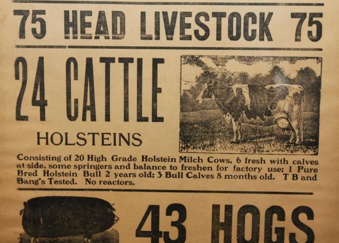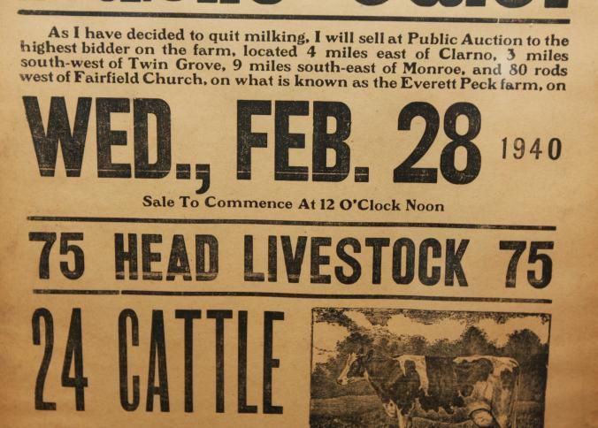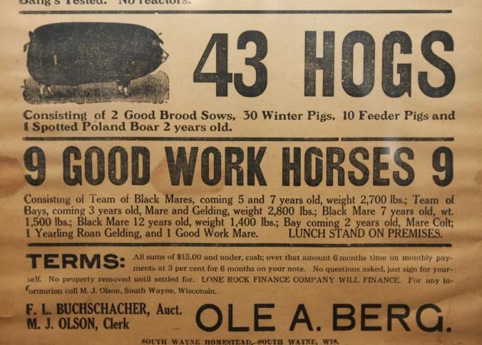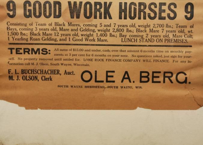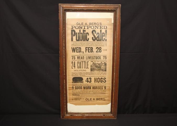 FR. 1940 WI (WISC.) FARM AUCTION BROADSIDE. 12X23." AUCTIONEER F. L. BUCHSCHACHER COMMENCED AT 12 NOON WITH A "POSTPONED PUBLIC SALE" OF LIVESTOCK. LUNCH STAND ON PREMISES.Created By