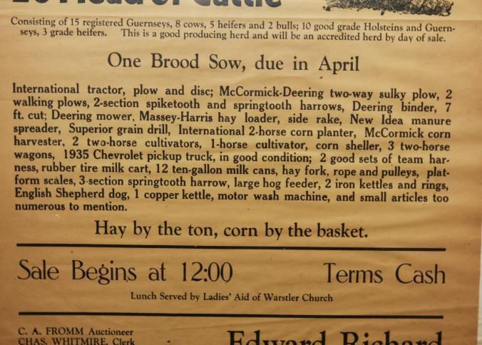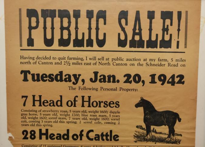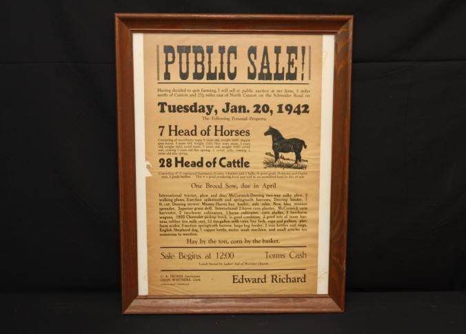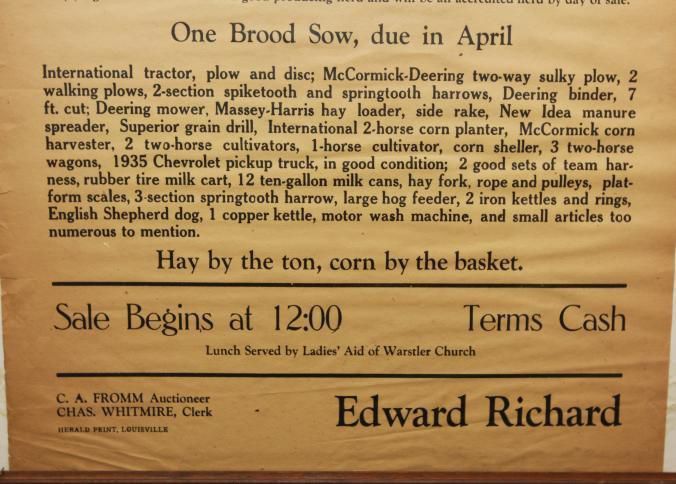 FR, BROADSIDE, LIVESTOCK, 1942, KY. C.A. FROMM, AUCT. HORSE, CATTLE, PIGS, FARM EQUIPMENT. HAY BY THE TON, CORN BY THE BASKET. 18 1/4" X 22 1/4"Created By