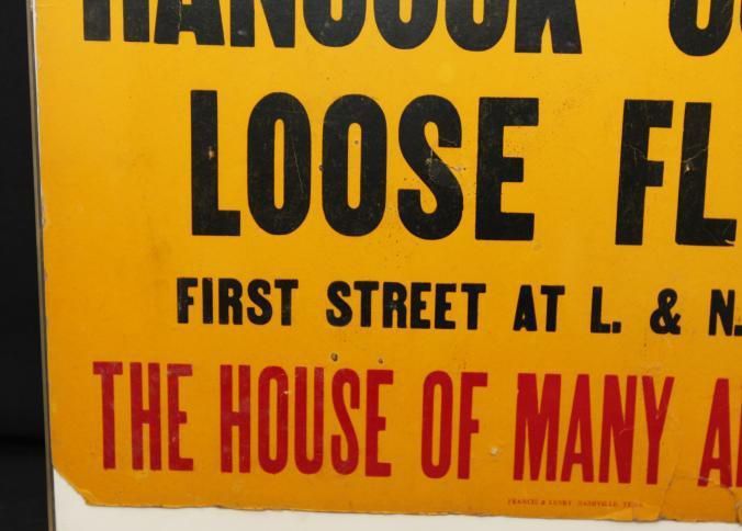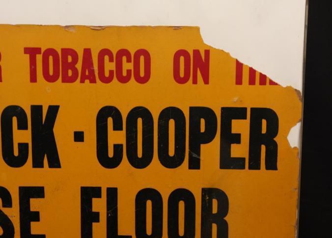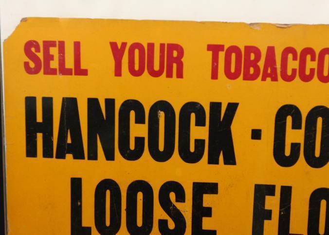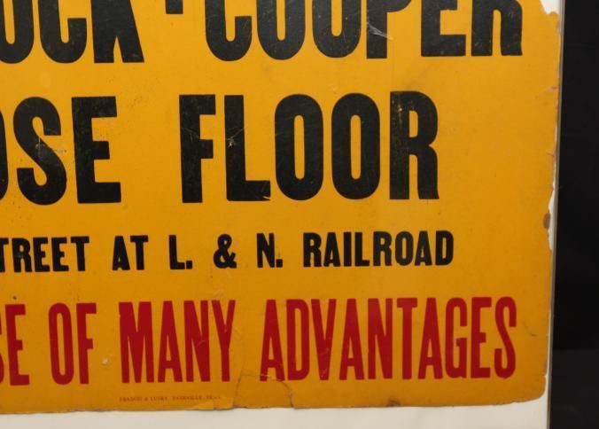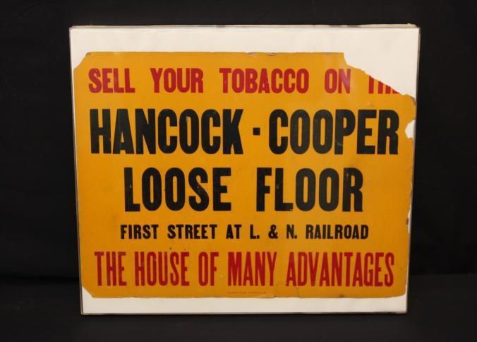 FR, ADV SIGN, TOBACCO, TN. NO DATE. "SELL YOUR TOBACCO ON THE HANCOCK-COOPER LOOSE FLOOR, FIRST ST AT L. & N. RAILROAD. THE HOUSE OF MANY ADVANTAGES" 20" X 16 1/4"Created By