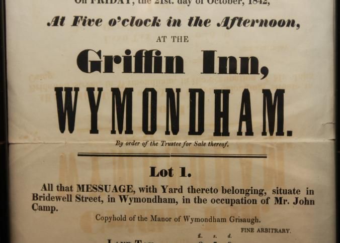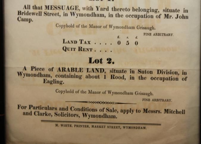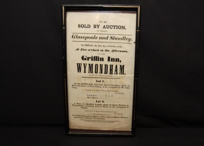 FR, BROADSIDE, REAL ESTATE, 1842, WYMONDHAM, ENGLAND(?) GLASSPOOLE AND STANDLEY, AUCTIONEERS. 9" X 15"Created By