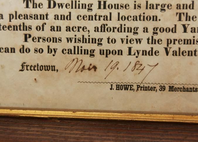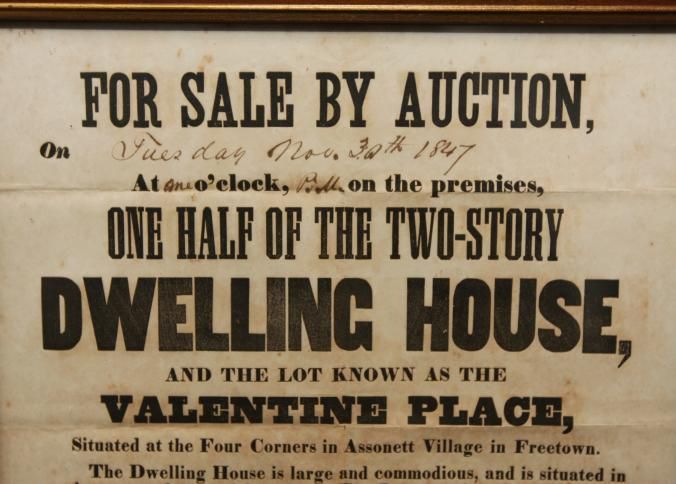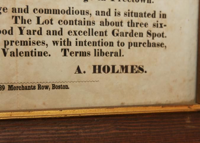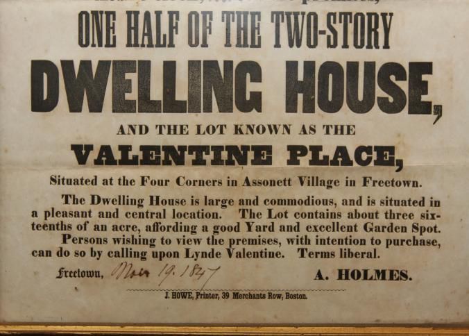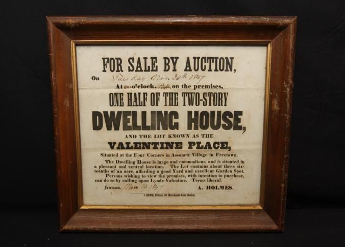 FR, BROADSIDE, REAL ESTATE, 1847, MA. ONE HALF OF THE TWO STORY DWELLING HOUSE AND THE LOT KNOWN AS VALENTINE PLACE, FREETOWN. 14 1/2" X 12 1/2"Created By