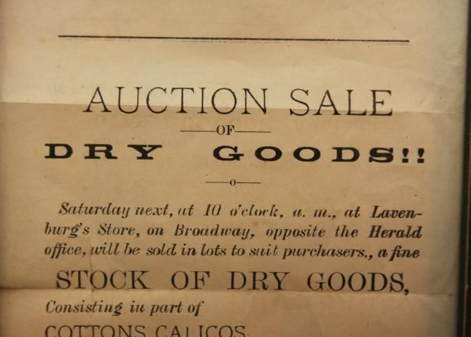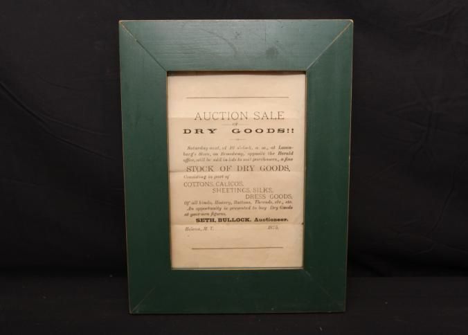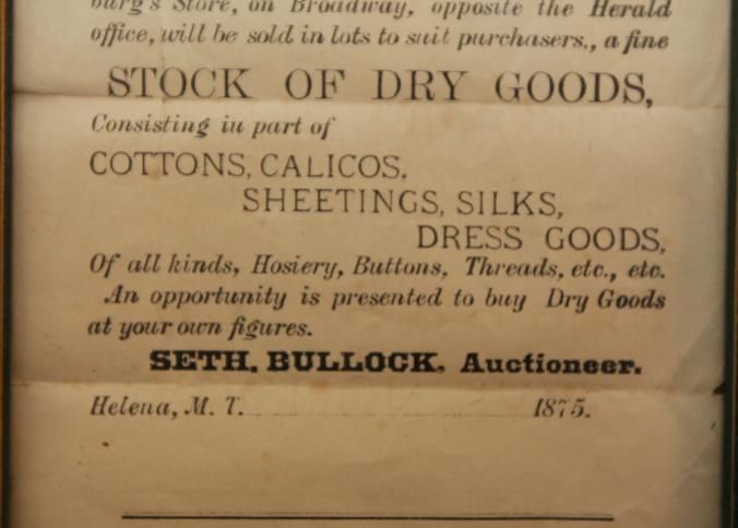 FR, BROADSIDE, 1875, HELENA, M.T. AUCTION SALE OF DRY GOODS, SETH BULLOCK, AUCTIONEER. 9" X 11"