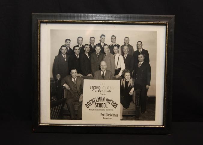 FR, PHOTO, AUCTION SCHOOL, 1946. THE SECOND CLASS TO GRADUATE FROM THE BOCKELMAN AUCTION SCHOOL, PAUL BOCKELMAN, PRESIDENT. 12 1/4" X 9 3/4"Created By