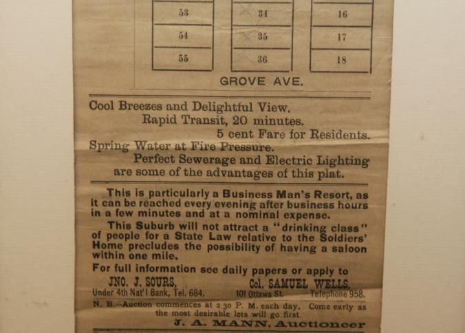 FR, REAL ESTATE, LAND, MI. NO YEAR. 40 LOTS, COOL BREEZES AND DELIGHTFUL VIEW. RAPID TRANSIT, 20 MINS, 5 CENT FARE FOR RESIDENTS. J.A. MANN, AUCT. 11" X 24"Created By