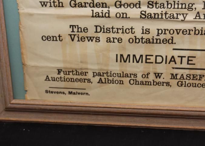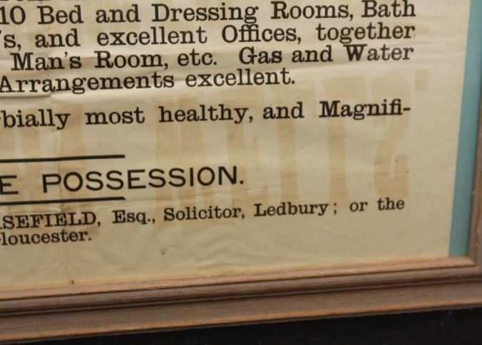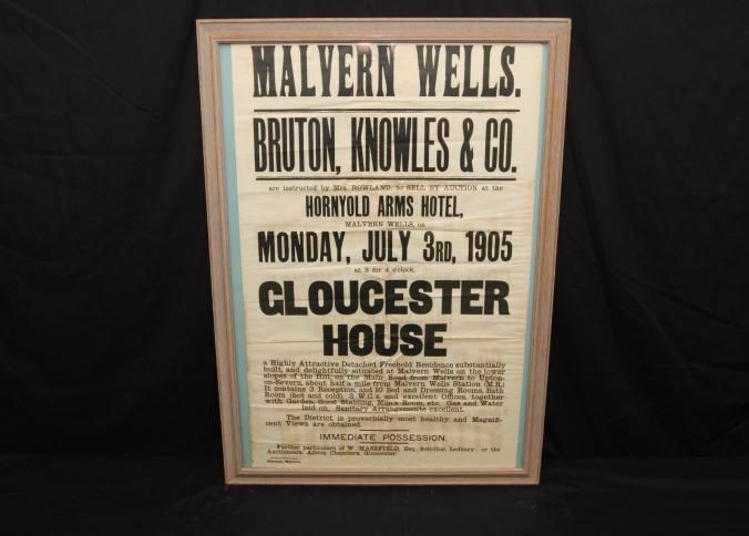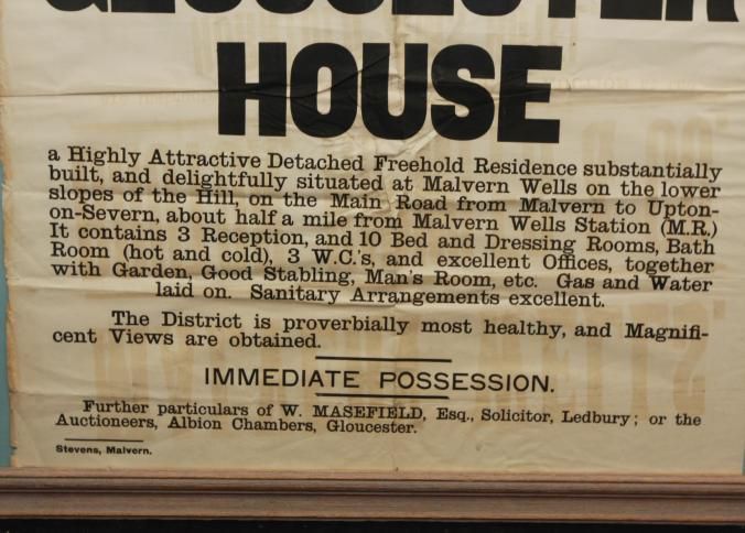 FR BROADSIDE, REAL ESTATE, 1905, GLOUCESTER, ENGLAND. GLOUCESTER HOUSE, FREEHOLD RESIDENCE. PARTICULARS. ALBION CHAMBERS, AUCTIONEERS. 24" X 31"Created By
