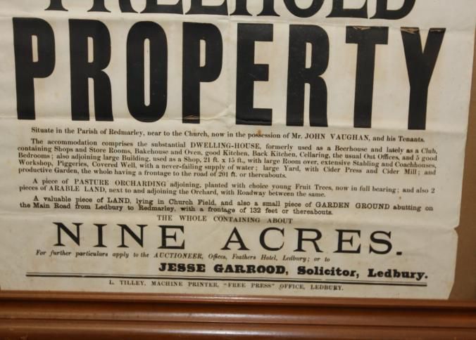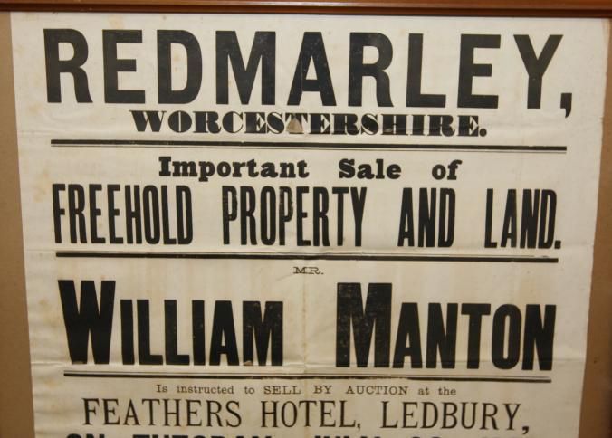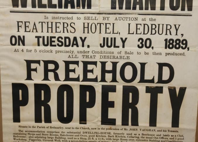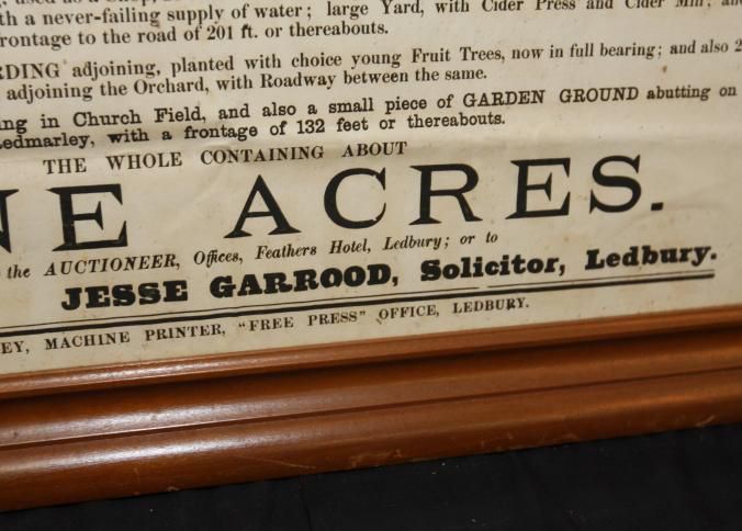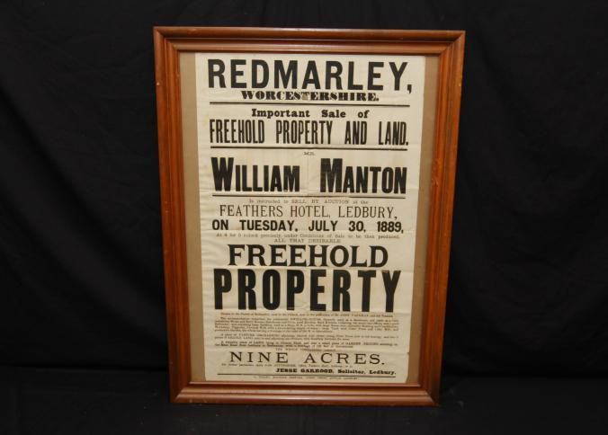 FR BROADSIDE, REAL ESTATE, 1889, LEDBURY, ENGLAND. WILLIAM MANTON, AUCTIONEER. PARTICULARS. 26 1/2" X 32 1/2"Created By