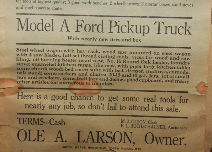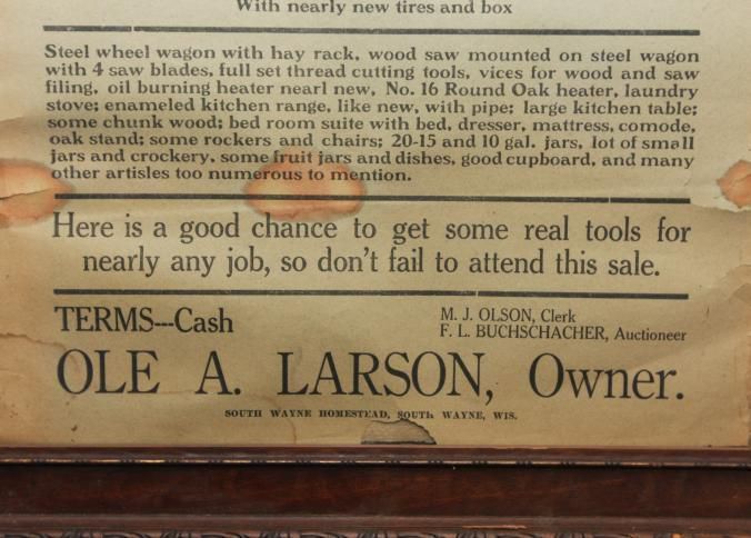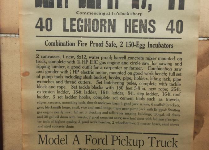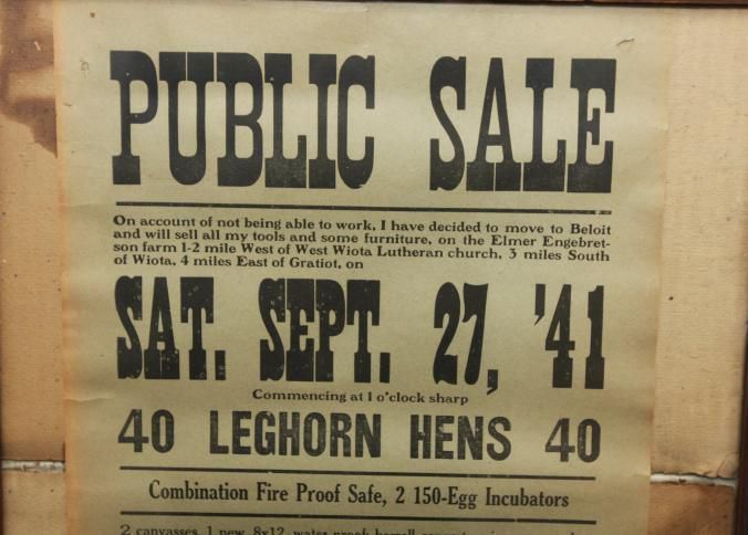 FR BROADSIDE, 1841, WI. FARM SALE, HENS, EQUIPMENT, MODEL A TRUCK. F.L. BUCHSCHACHER, AUCTIONEER. 18" X 26"Created By