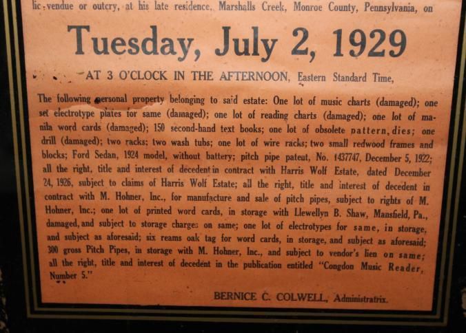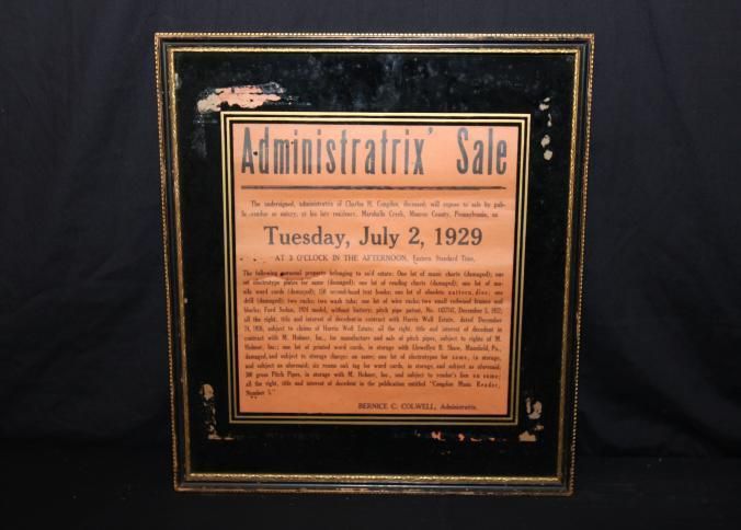 FR BROADSIDE, 1929, PA. ADMINISTRATIX' SALE. BERNICE C. COLWELL, ADMINISTRATRIX. 19" X 20"