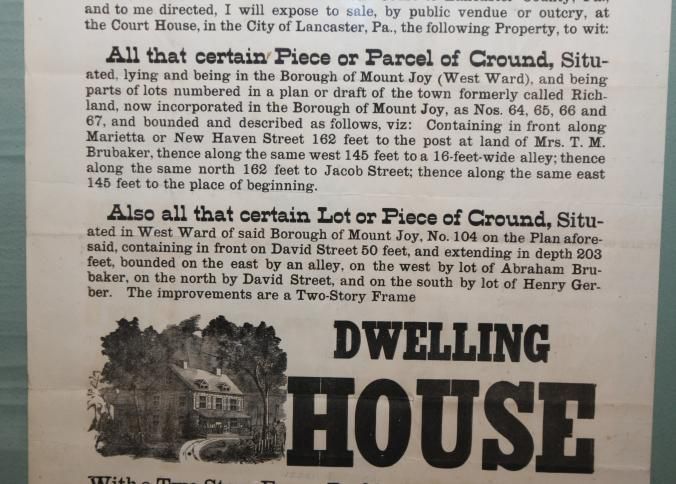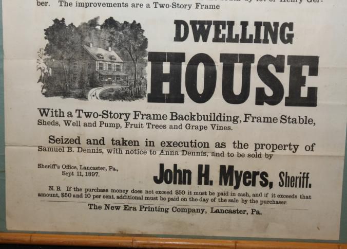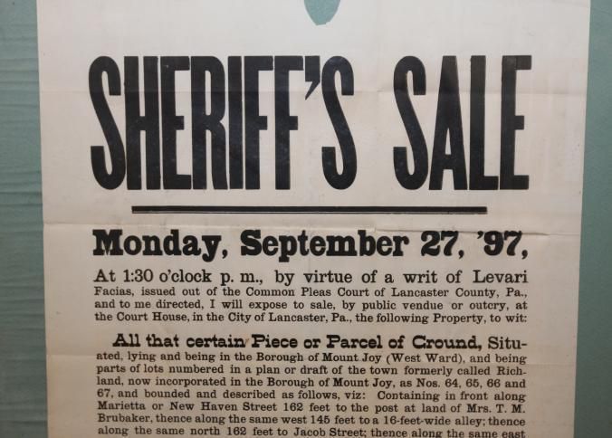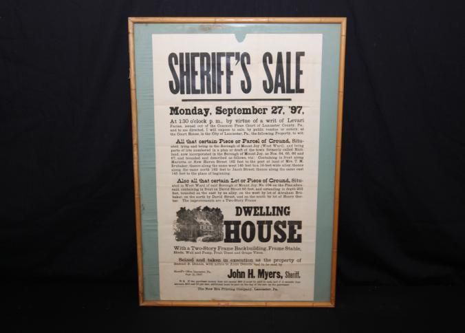 FR BROADSIDE, SHERIFF'S SALE, REAL ESTATE, 1897, PA. JOHN MYERS, SHERIFF. 18 1/2" X 25"