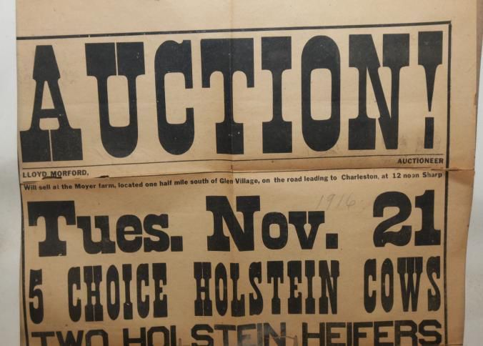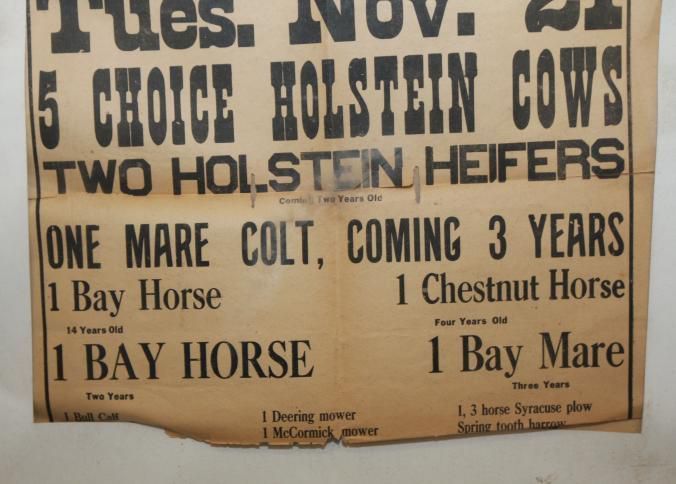FR BROADSIDE, LIVESTOCK, 1916, CHARLESTON. HOLSTEINS, HORSES, EQUIPMENT. 20" X 26"
