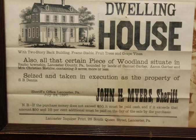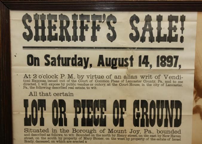 FR BROADSIDE, REAL ESTATE, 1897, PA. SHERIFF'S SALE, JOHN MYERS, SHERIFF. 20 3/4" X 24 3/4"