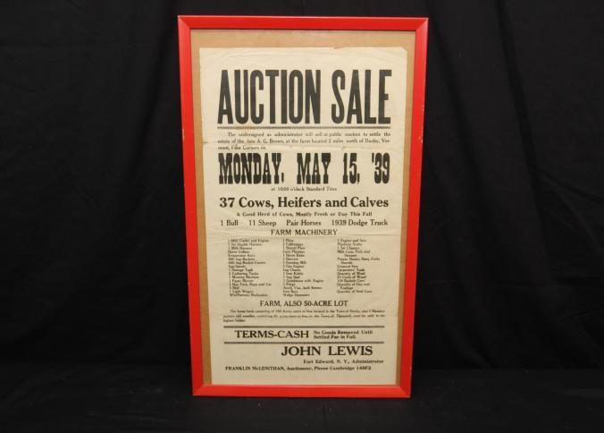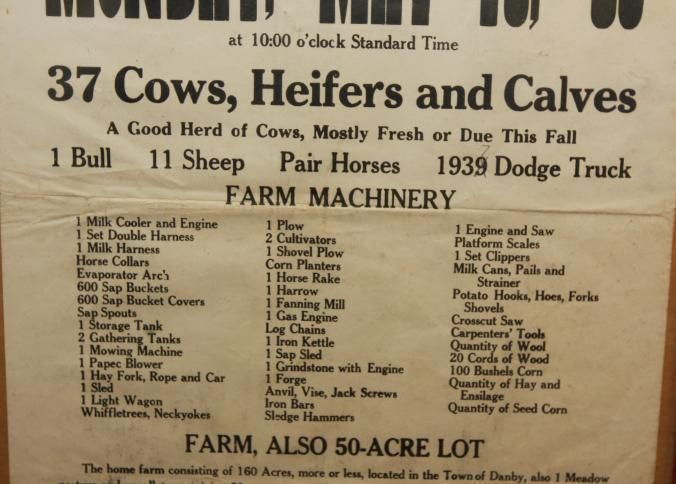 FR BROADSIDE, FARM, 1939, NY. 37 COWS, HEIFERS AND CALVES, MACHINERY, OTHER LIVESTOCK. 50 ACRE LOT. FRANKLIN MCLENITHAN, AUCTIONEER. 16" X 25"Created By
