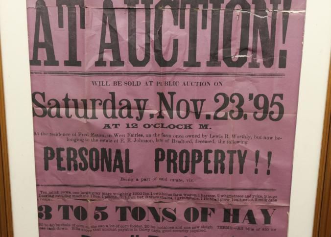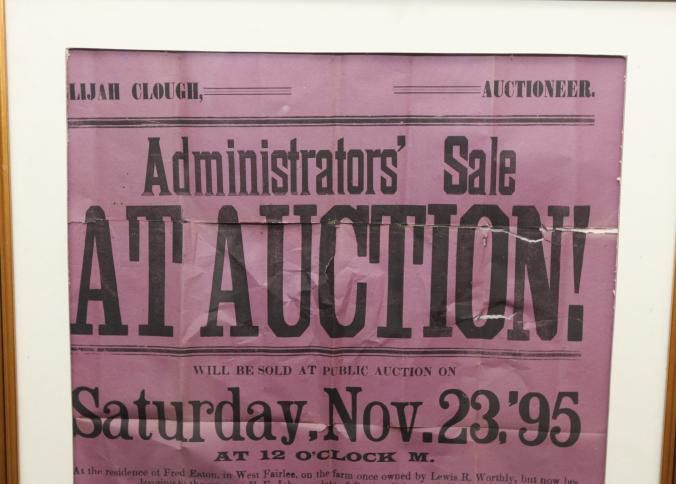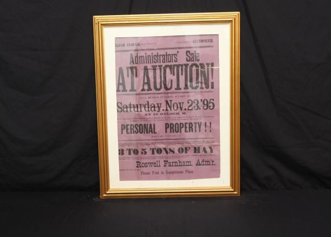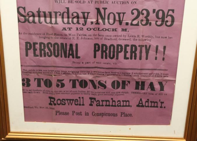 FR BROADSIDE, ESTATE, 1895, VT. ADMIN SALE AT AUCTION! INCL 3 TO 5 TONS OF HAY. ELIJAH CLOUGH, AUCTIONEER. 23 1/2" X 28 1/2"Created By