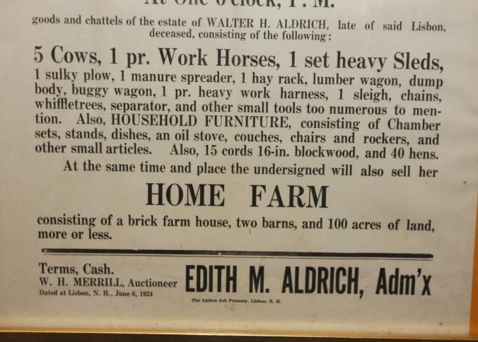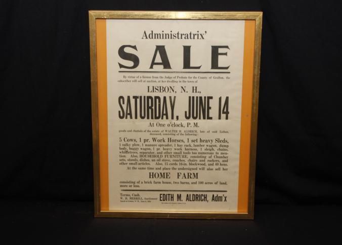 FR BROADSIDE, FARM, 1924, NH. ADMINISTRATRIX' SALE. W.H. MERRILL, AUCTIONEER. 14 3/4" X 17 1/2"